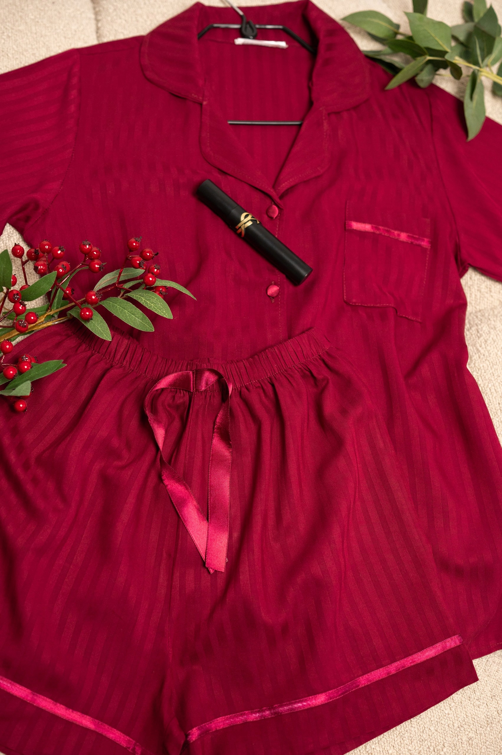 Bordowa piżama z wiskozy – luksusowy komfort i elegancja na każdy dzień!