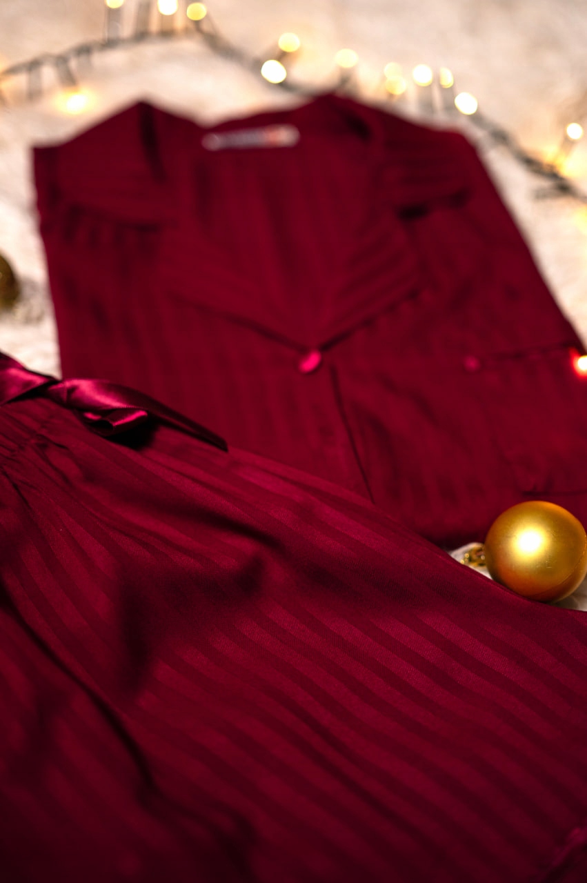 Głęboki bordowy kolor z subtelnymi paskami – bordowa pasja i minimalistyczna elegancja.