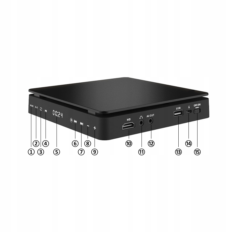 Прилагается оборудование DVD-плеер, кабель HDMI, AV-кабель, кабель Type-C, адаптер питания зарядное устройство ЕС.