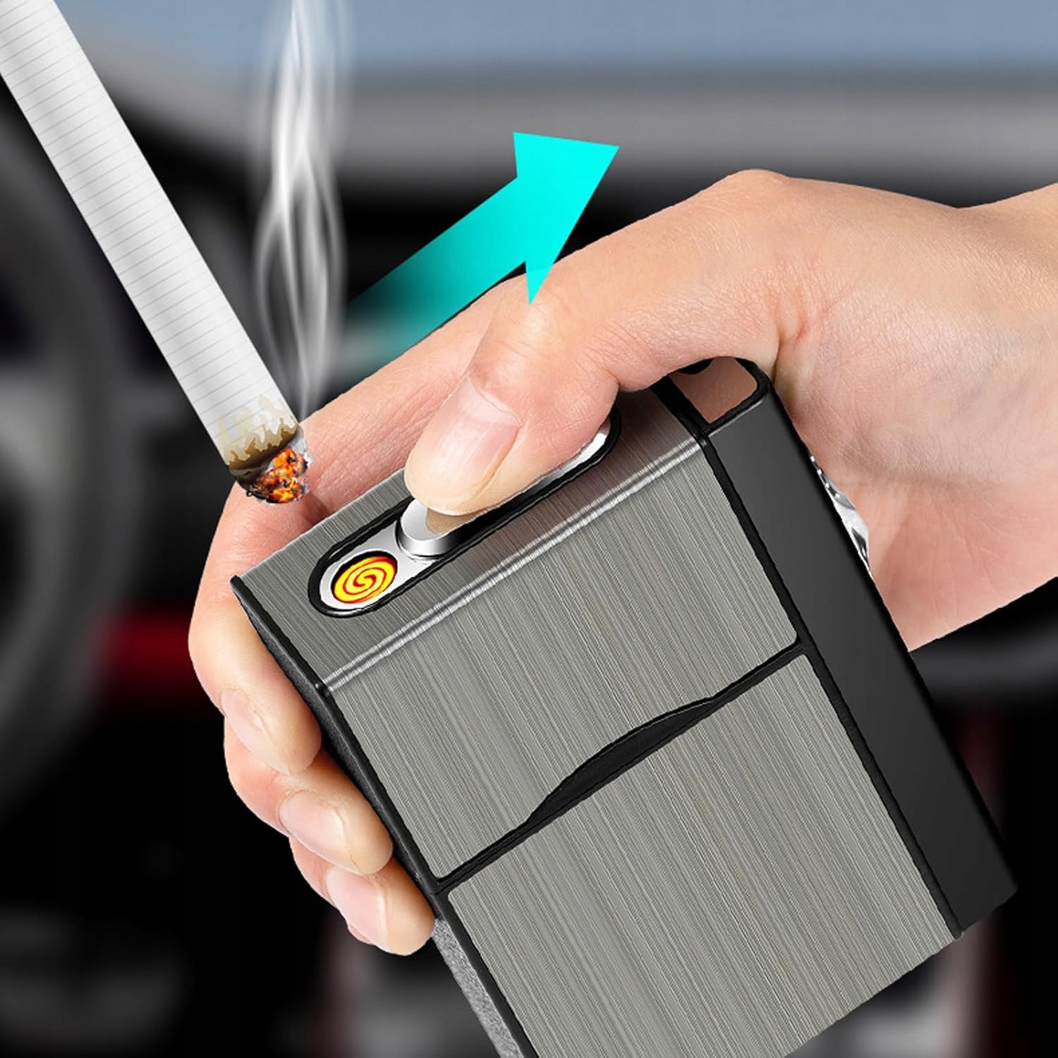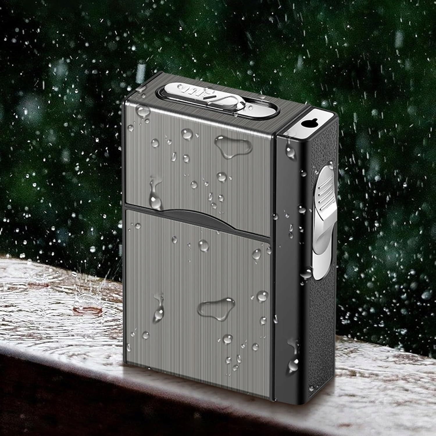 wiatroodporna zapalniczka w tej papierośnicy zapewnia łatwe zapalenie papierosa w wietrznych warunkach. Zapewnia niezawodną ochronę przed wiatrem, dzięki czemu płomień pozostaje stabilny, a papieros pali się równomiernie.