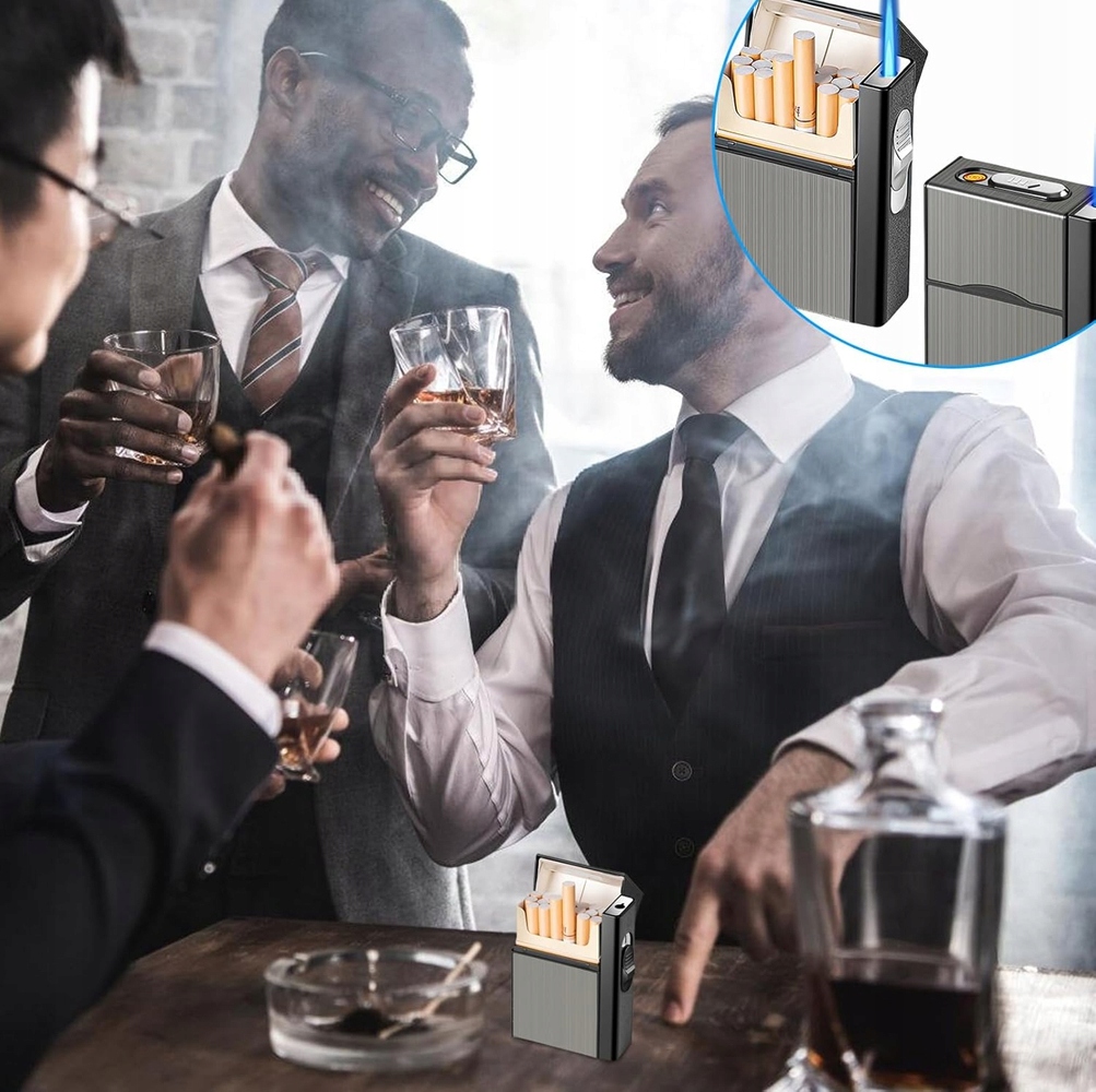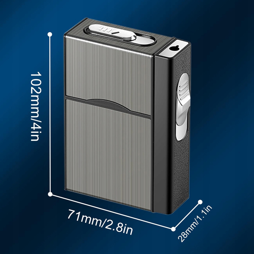 papierośnica z zapalniczką jest kompaktowa i lekka, co ułatwia jej przenoszenie. Z łatwością zmieści się w kieszeni, torebce lub kieszeni kurtki. Dzięki temu zapalniczkę masz zawsze pod ręką, niezależnie od tego, gdzie jesteś.