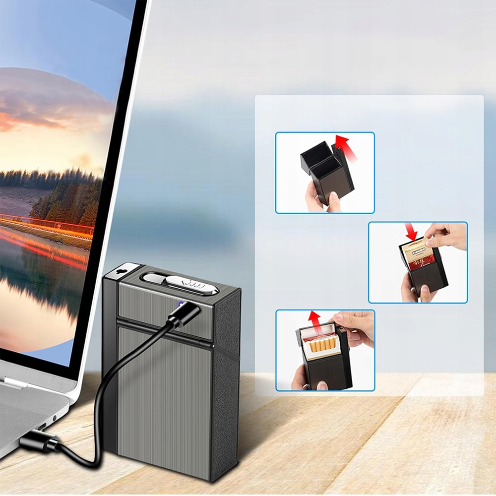papierośnica z zapalniczką posiada wygodny port typu C, który umożliwia szybkie i wygodne ładowanie. Zapalniczkę można łatwo podłączyć do komputera, laptopa lub innego źródła zasilania USB w celu naładowania.