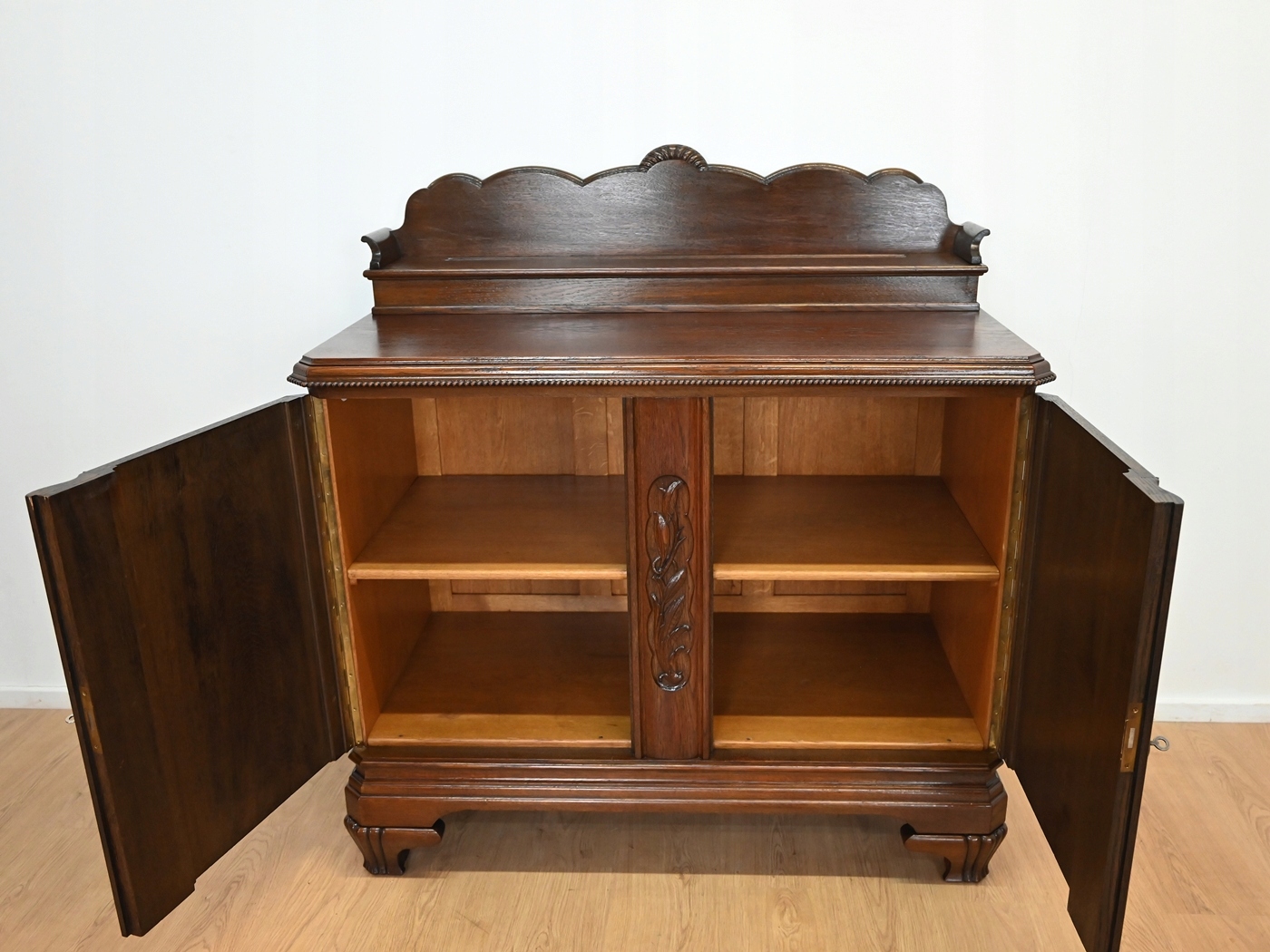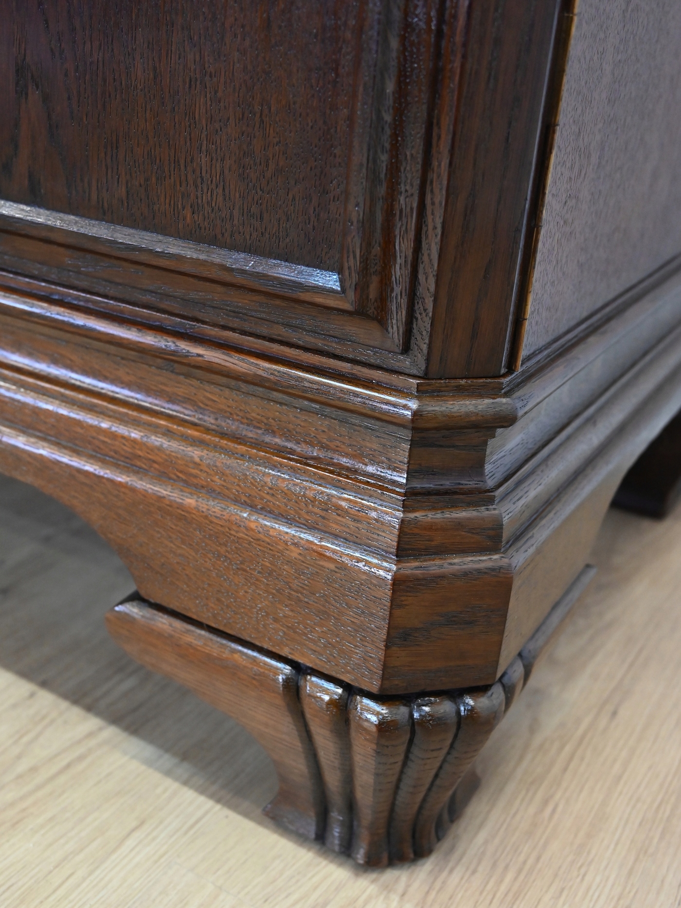 Stan bardzo dobry. Mebel przygotowany do użytkowania. Odświeżone zostały powierzchnie zewnętrzne jak i środek mebla. Mebel ma już swoje lata i ślady minionego czasu, które nie wpływają na jego odbiór estetyczny, są świadectwem autentyczności mebla. Komodę od razu można wstawić do mieszkania.