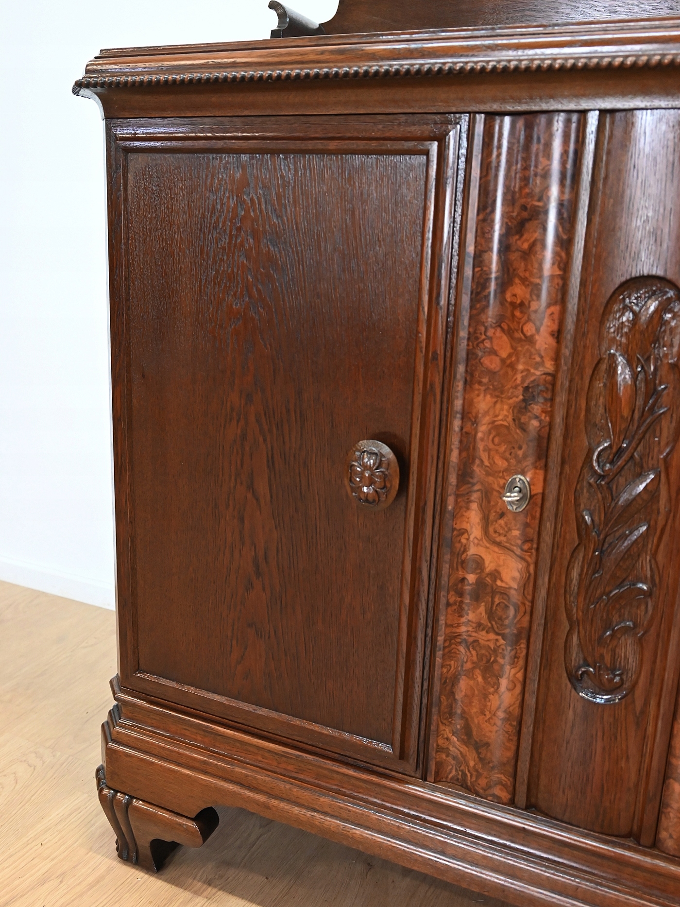 Wykonany jest w całości z drewna, fornirowany dębem i orzechem.