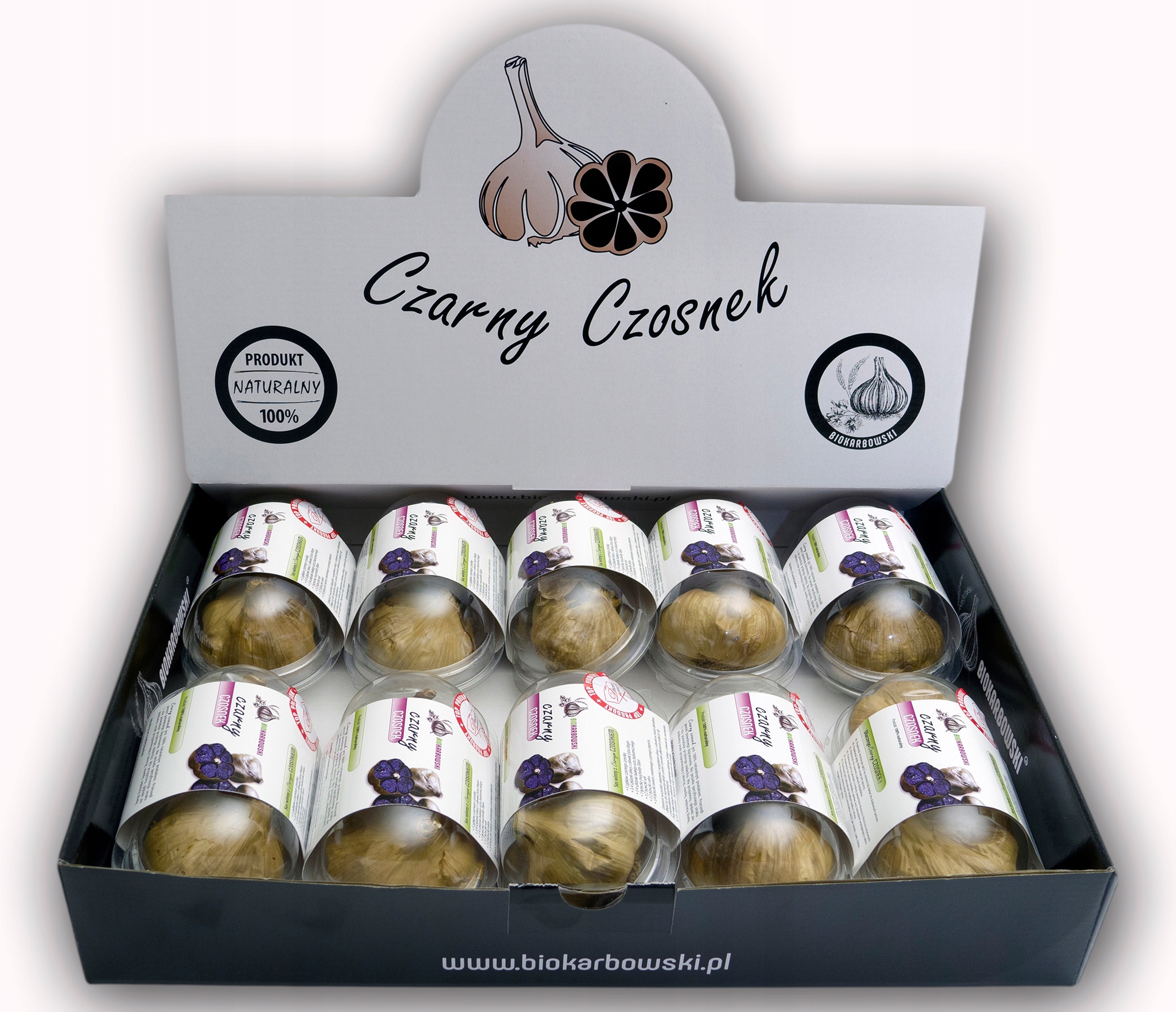 Przedmiotem sprzedaży są główki czarnego czosnku zapakowane w blistrze.