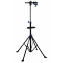 Podczas pracy drążek teleskopowy, który można regulować w zakresie od 105 do 190 cm, utrzymuje zawieszony sprzęt sportowy, rama jest przymocowana za pomocą regulowanego zacisku. Naprawy można zatem przeprowadzać na poziomie oczu, wygodna pozycja pracy chroni plecy i kolana.