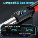 【3 ulepszone tryby】Tryb wstępnego ustawienia, tryb czasu rzeczywistego i tryb szczytowy. Tryb wstępnego ustawienia – działa przy wstępnie ustawionym momencie obrotowym i można wstępnie ustawić 10 grup danych. Tryb czasu rzeczywistego – siłę wyważającą można zastosować, śledząc wartość na wyświetlaczu. Tryb szczytowy – wygenerowany moment obrotowy zostanie zarejestrowany i można go wyświetlić w dowolnym momencie, a 500 zestawów danych testowych można zapisać. Dokręcaj jak profesjonalista dzięki temu elektrycznemu kluczowi dynamometrycznemu – cyfrowe sterowanie zapewnia idealne dokręcenie