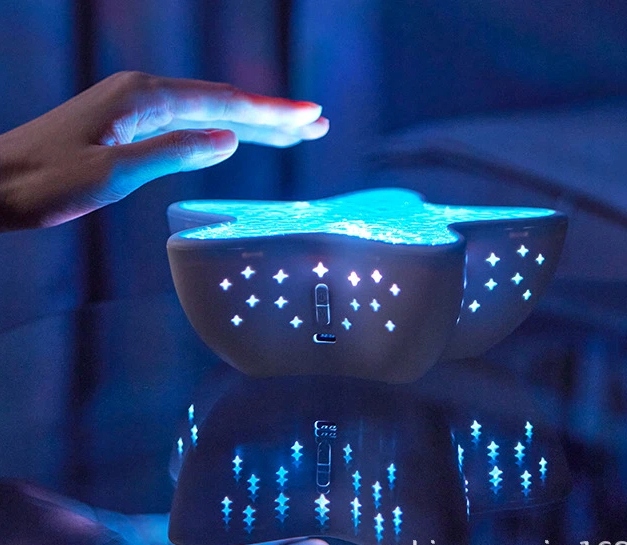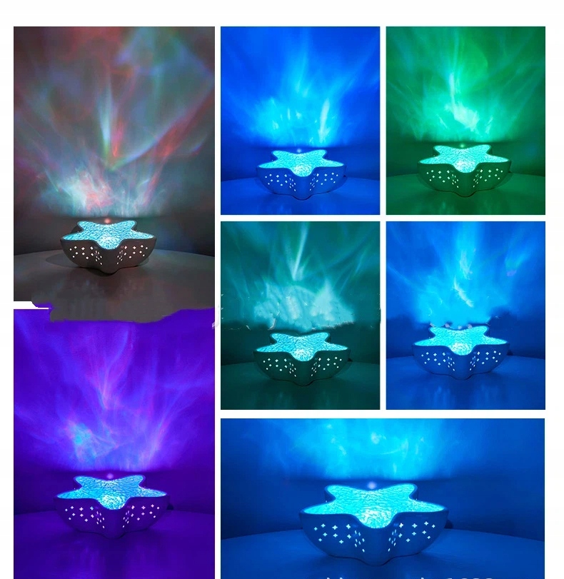Płynące fale światła nocnej lampki z efektem falującej wody tworzą leniwą, romantyczną atmosferę, dodając żywych plam kolorów do każdego pomieszczenia. Migoczące wzory światła przypominają falującą wodę, tworząc harmonijną i przyjemną atmosferę.