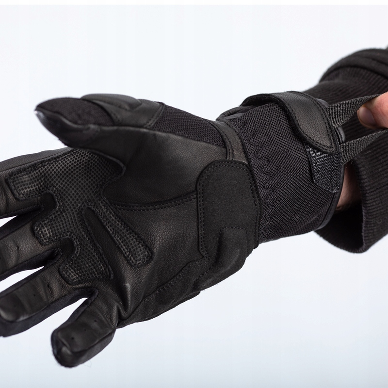 Bezpieczeństwo zapewniają ochraniacze kostek z TPU, ochraniacze palców i kciuka z TPR oraz pianki Memory Foam i podwójna warstwa skóry na dłoni. A do tego rękawice wyposażone są w skórę umożliwiającą obsługę smartfona na palcu wskazującym oraz zapięcie na rzep.