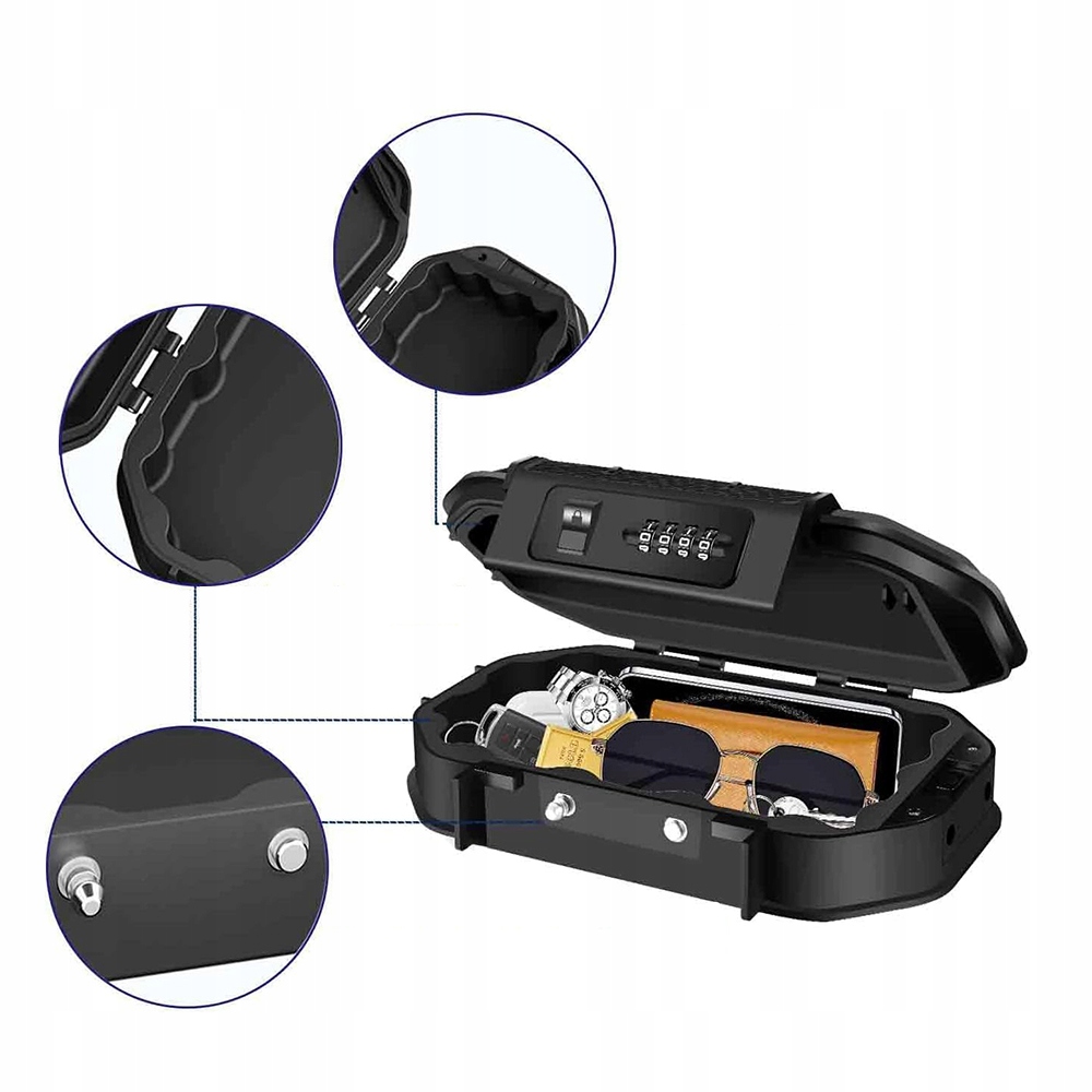 Mimo kompaktowych wymiarów, sejf oferuje zaskakująco dużo miejsca w środku. Z łatwością pomieści telefon komórkowy, klucze, dokumenty tożsamości, karty płatnicze czy gotówkę. Wszystkie Twoje niezbędne rzeczy będą bezpiecznie przechowywane w jednym miejscu, zawsze pod ręką gdy ich potrzebujesz.