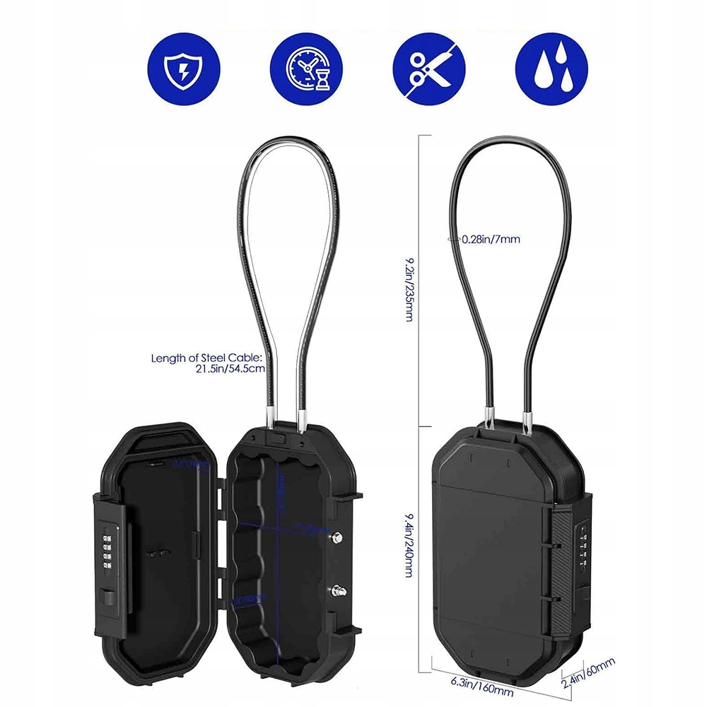 Wyposażony w wytrzymały stalowy kabel, który można łatwo przymocować do różnych obiektów, sejf zapewnia mobilną ochronę Twoich wartościowych przedmiotów gdziekolwiek jesteś. Możesz przyczepić go do leżaka na plaży, fotela w biurze czy elementów wyposażenia samochodu, ciesząc się swobodą i bezpieczeństwem.