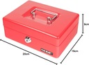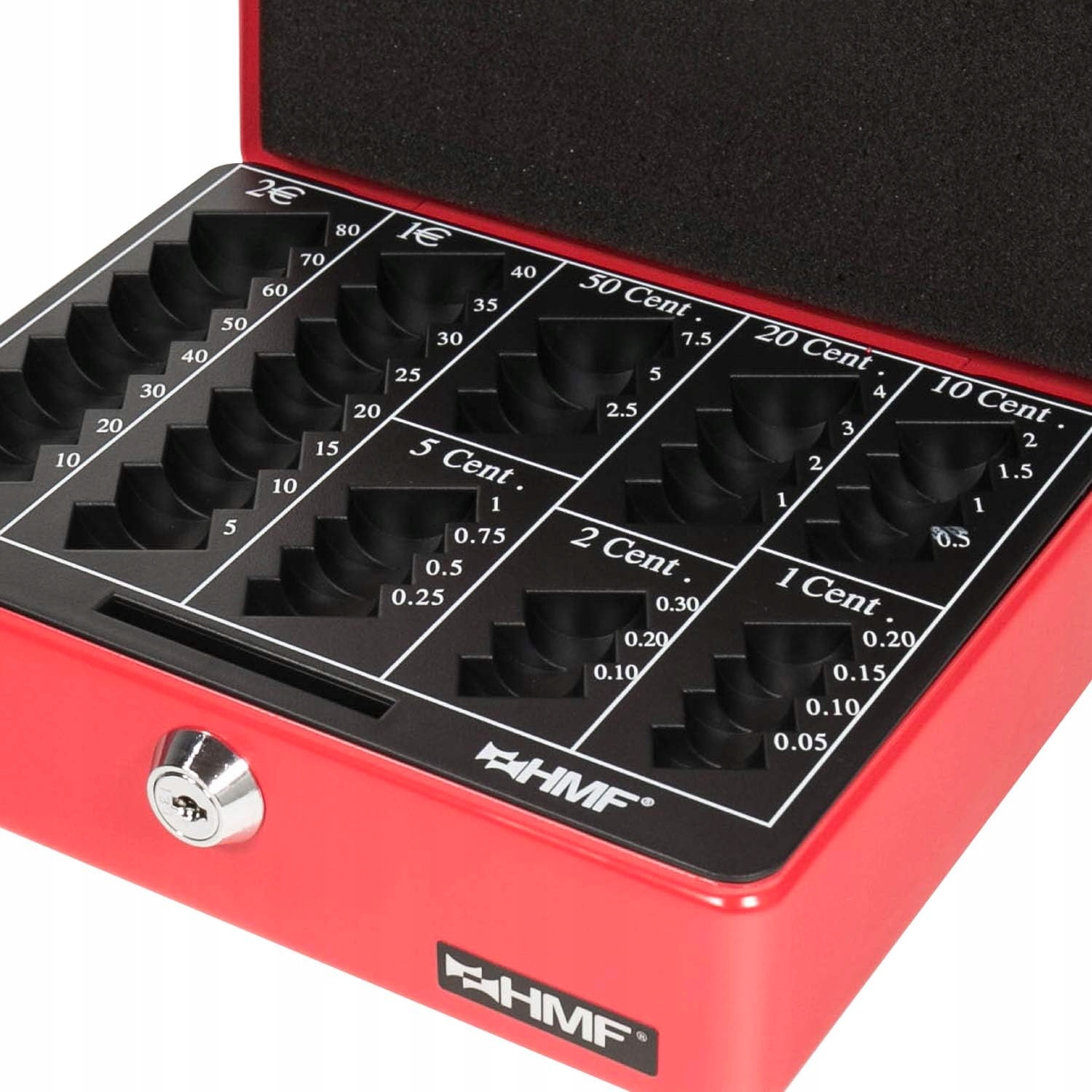 Solidny zestaw do biura i domu: kasetka wykonana z trwałej stali i tworzywa sztucznego, z sejkowym zamkiem i dwoma kluczami, oraz wyjmowaną wkładką na monety euro. Uchwyt ułatwia przenoszenie, a powłoka proszkowa chroni przed zadrapaniami 🛡️🔒.