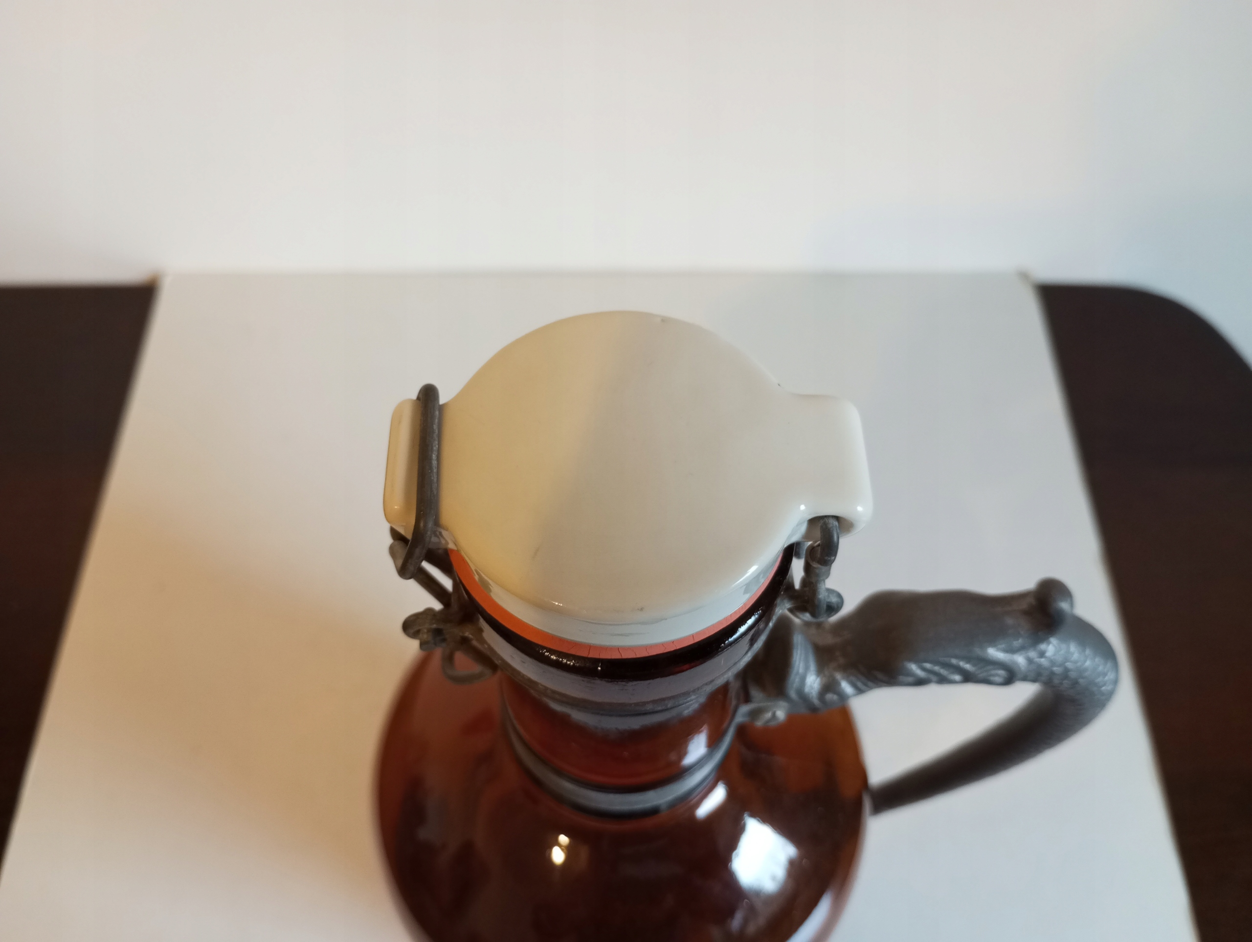 BUTELKA PO NIEMIECKIM PIWIE GEMINDER O POJEMNOŚCI 2 LITRÓW. WYSOKOŚĆ BUTELKI 36 cm. ŚREDNICA BUTELKI 14 cm. ŚREDNICA Z RĄCZKĄ 20 cm. ODLEWANA METALOWA RĄCZKA. PORCELANOWY KOREK. BUTELKA W SUPER STANIE - BEZ USZKODZEŃ. OSTATNIE ZDJĘCIE POCHODZI OD TAKIEGO PIWA TYLKO MIAŁO SYGNOWANY KOREK - TA NA AUKCJI MA KOREK BEZ NADRUKU SYGNATURY.