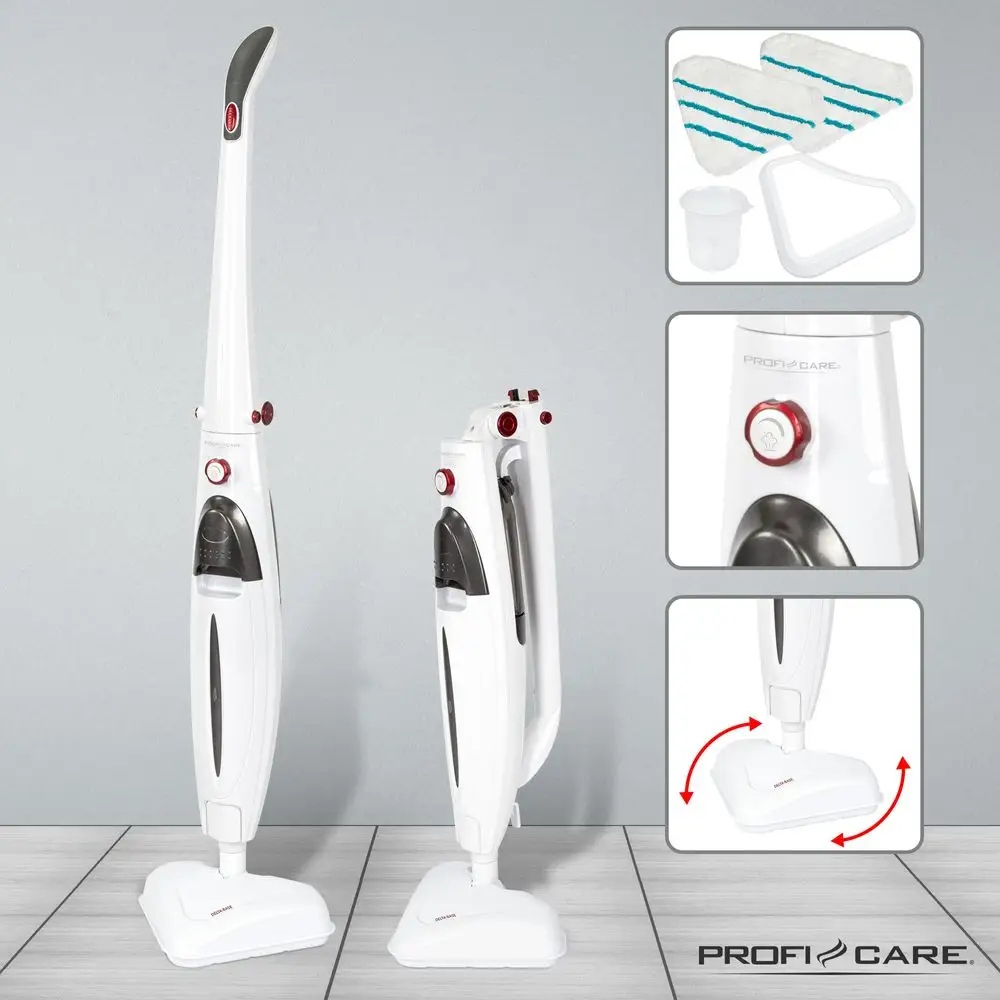 Mop parowy ProfiCare PC-DR 3093 czyści, dezynfekuje i usuwa tłuszcz w temperaturze 100°C, nie zostawia śladów ani osadów z tłuszczu. Nadaje się do różnych powierzchni, między innymi laminat, podłogi drewniane, marmurowe, gumowe, łupkowe, ceramiczne. Czyści również powierzchnie materiałowe, takie jak dywany, maty i poduszki.