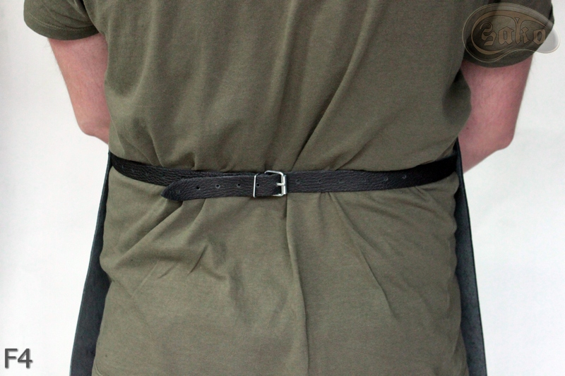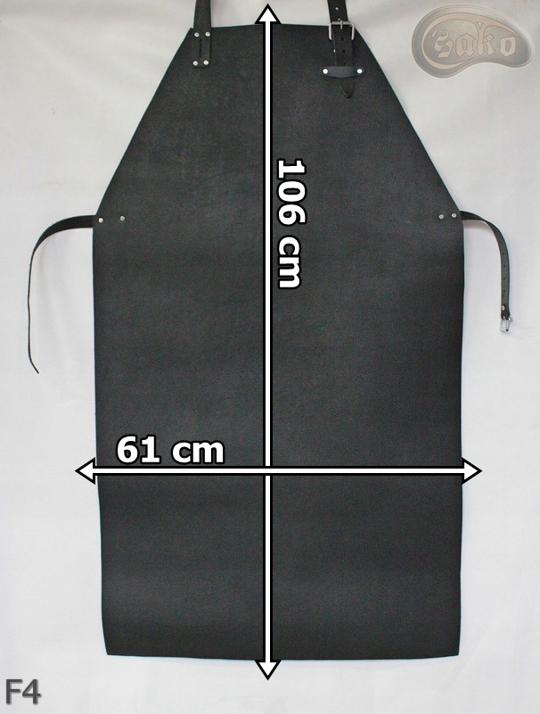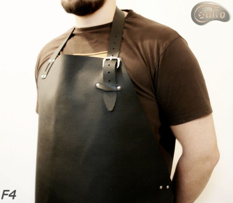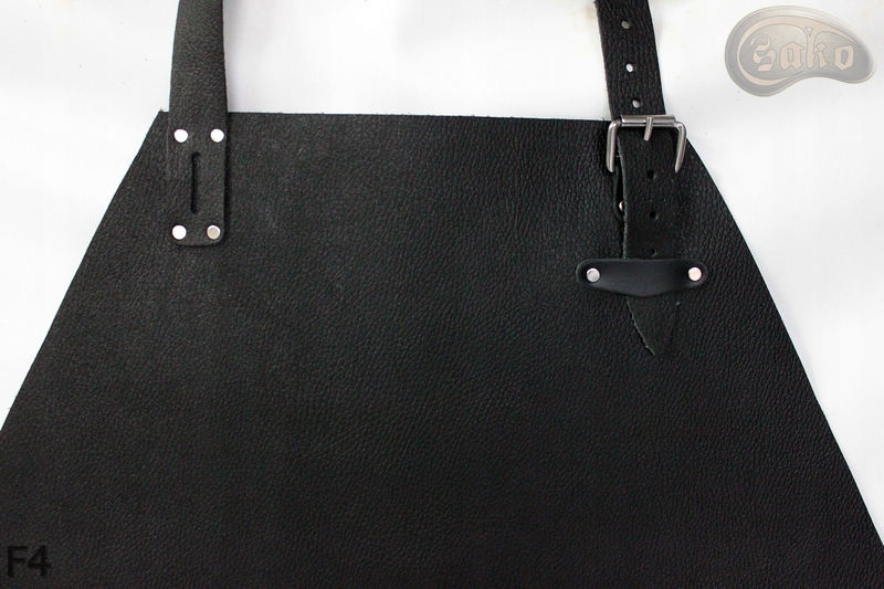 Fartuch skórzany przedni zakładany na szyję, z regulacją, z zapięciem na klamrę.