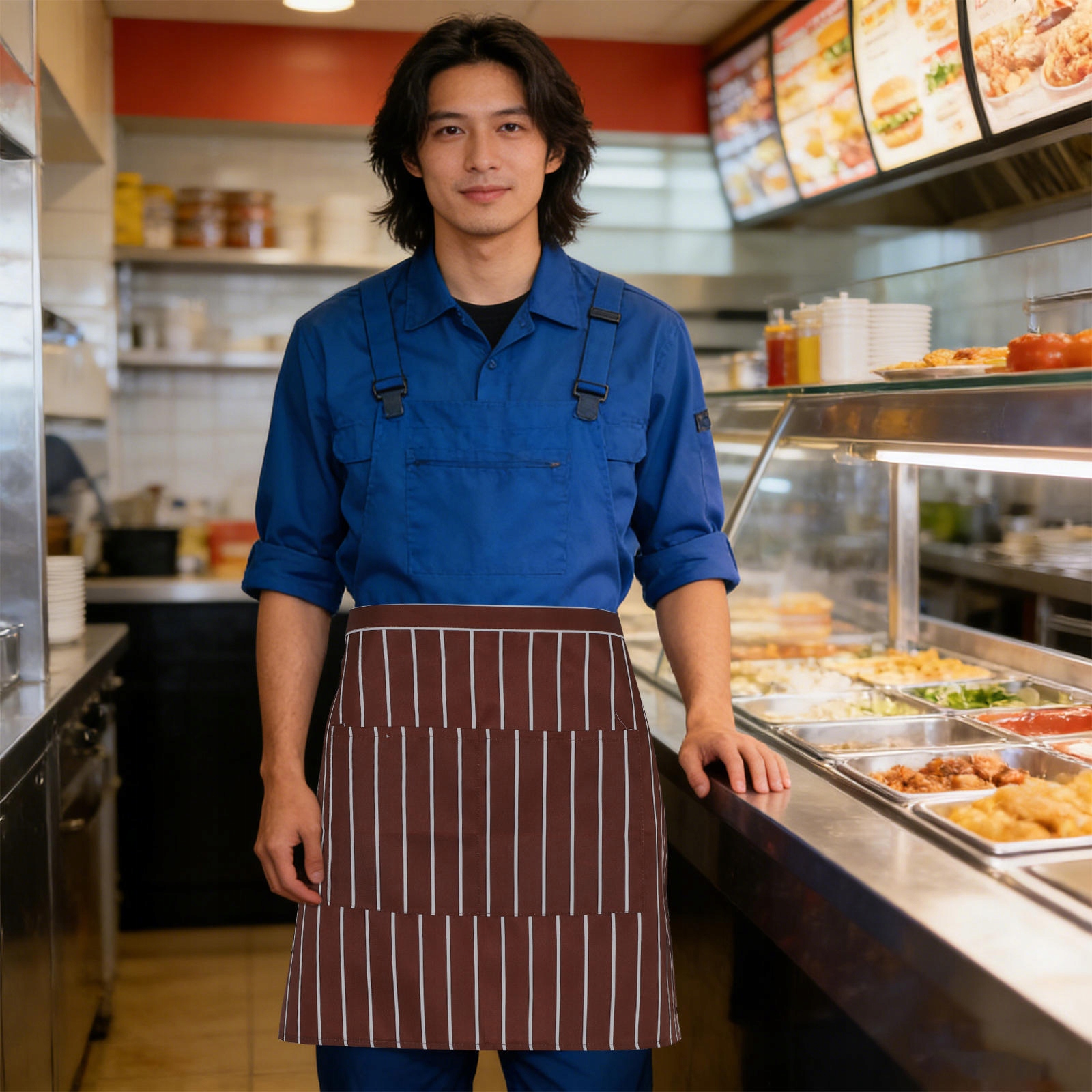 ✅Ponadczasowy profesjonalny wygląd: dzięki stylowi półfartuchu w paski ten fartuch roboczy idealnie pasuje zarówno do współczesnych, jak i klasycznych potrzeb munduru restauracyjnego, wzmacniając dopracowany wizerunek zespołu