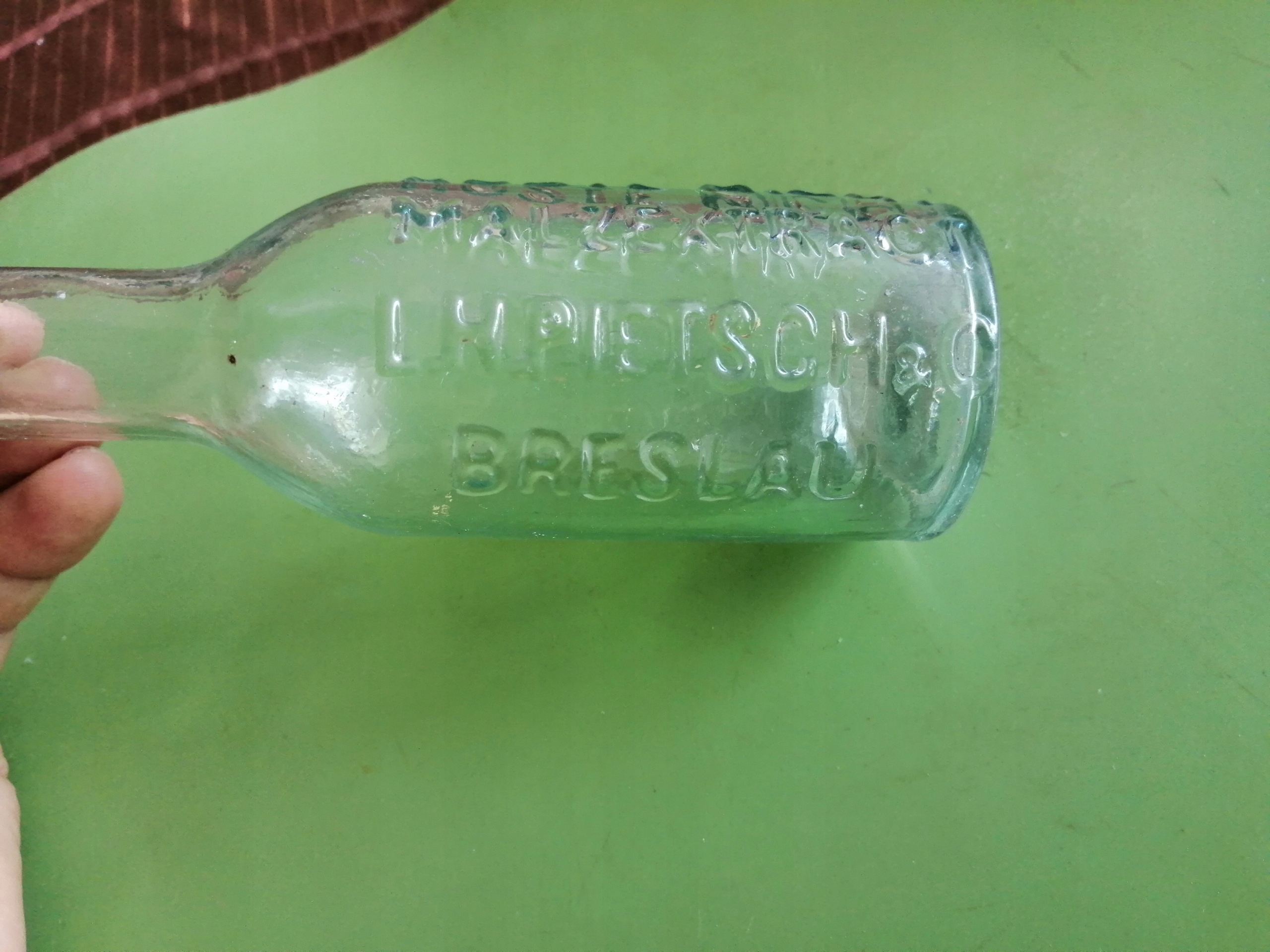 Polecam starą butelkę apteczną z BRESLAU ( WROCŁAW ) .Sygnowana : HUSTE NICHT MALZEXTRACT L.H. PIETSCH & C. BRESLAU . Wysokość 17,5 cm. Ładny stan !