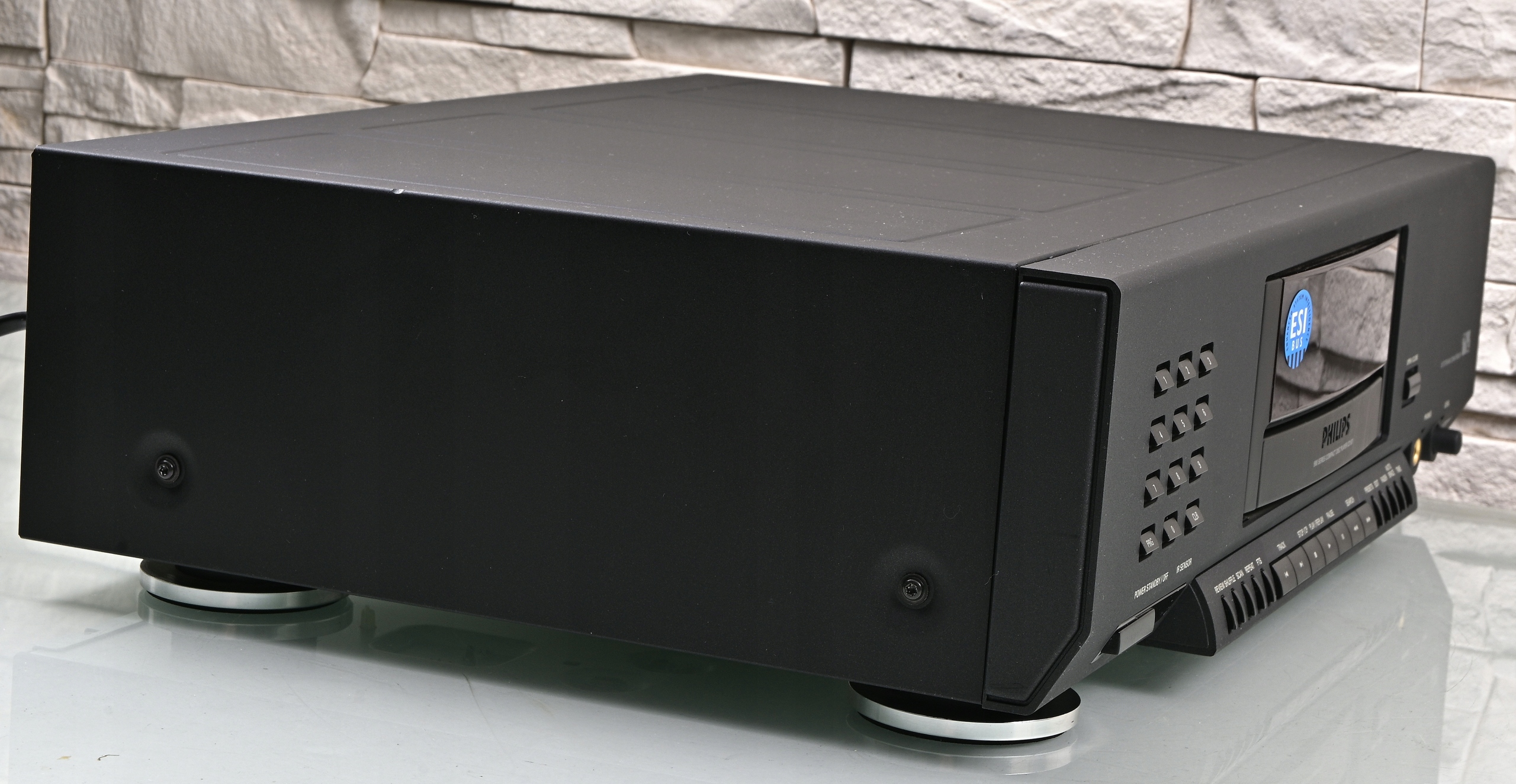 Prezentujemy Państwu wysokiej klasy odtwarzacz płyt kompaktowych Philips CD 931, wyprodukowany w pierwszej połowie lat 90. Jest to solidny przedstawiciel cenionej Serii 900, która do dziś stanowi wzór ergonomii i jakości wykonania. Choć model ten stoi w cieniu droższego brata (CD 950), ma nad współczesnymi "plastikowymi" odtwarzaczami jedną gigantyczną przewagę: sercem tego urządzenia jest legendarny, niezniszczalny mechanizm CDM-9 z soczewką poruszającą się w polu magnetycznym (Swing Arm). To rozwiązanie zapewnia bezkonkurencyjną trwałość i precyzję odczytu, o jakiej dzisiejsze napędy mogą tylko pomarzyć. Brzmieniowo Philips postawił tu na sprawdzoną technologię Bitstream Conversion, co gwarantuje dźwięk gładki, niemęczący i bardzo muzykalny.