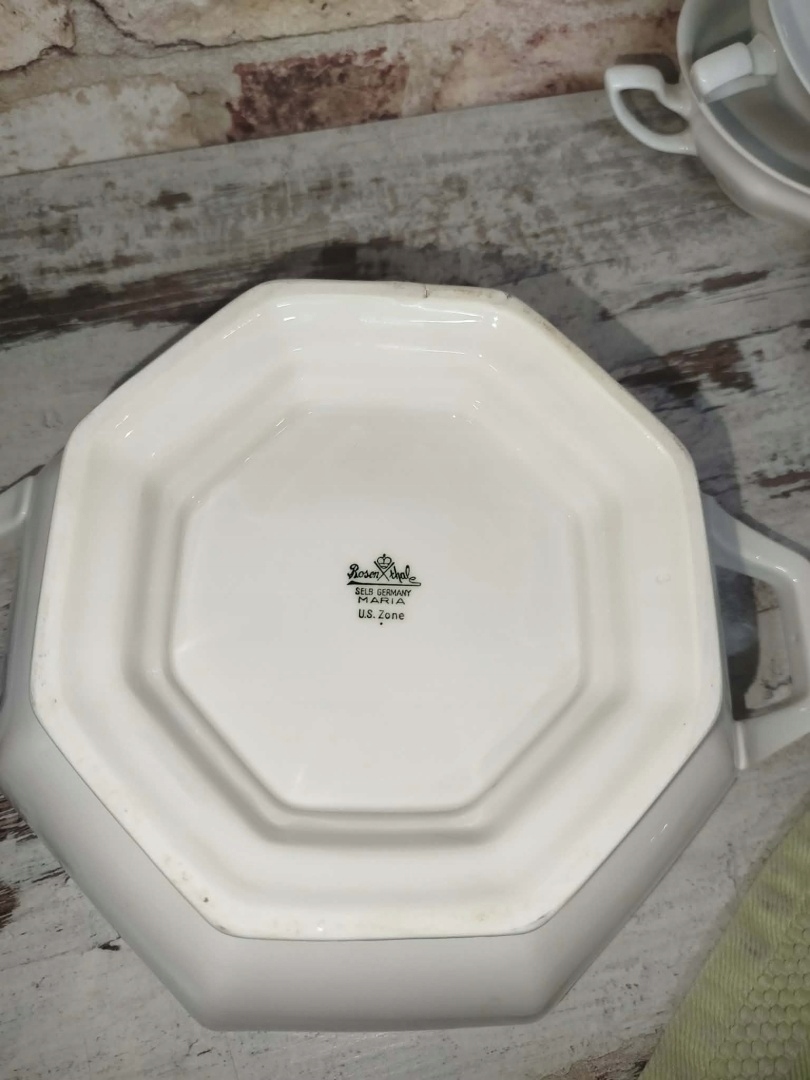 Przedmiotem sprzedaży jest waza Rosenthal Biała Maria ,stan bardzo dobry- od spodu wada fabryczna -patrz zdjęcia , wymiary : wys. 14 . średnica 24,5 cm, wys. bez pokrywy 8,5 cm, sygnatura stosowana po 1945 r. Waza zostala wyprodukowana pod koniec II wojny światowej , różni się bielą od współczesnej porcelany. Polecamy !