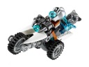 Gorzan jest uwięziony w lodowej klatce, ale musi z niej uciec i zabrać CHI na tyle daleko, by Sir Fangar nie mógł go dogonić. Pomóż przywódcy plemienia Goryli roztopić lód jego gorącym młotem Blayzhamma. Unikaj rakiet z lodowymi końcówkami wystrzeliwanych przez Sir Fangora z mrożącej krew w żyłach szablozębnej machiny. Trzymaj się z dala od jej lodowych pazurów, kłapiących szczęk i gigantycznych zębów. Musisz poruszać się na tyle szybko, by nie dogonił Cię również Stealhor na swoim odłączanym trójkołowcu! W zestawie 3 minifigurki z wyborem broni: Sir Fangar, Stealthor i Gorzan.