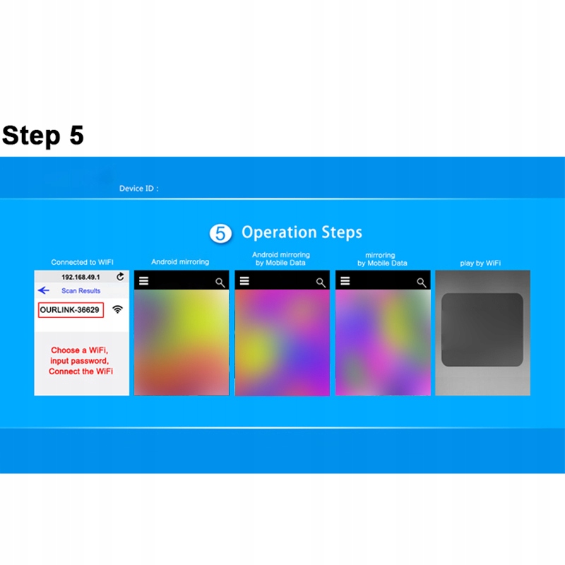4: System operacyjny telefonu: obsługa systemu IOS 6.0 lub nowszego. W przypadku telefonów obsługa systemu OS 4.0 lub nowszego. Tablety obsługują system IOS 6.0 lub nowszy. W przypadku tabletów obsługa systemu OS 4.0 lub nowszego. W przypadku projektorów obsługa projektorów z interfejsem wyjściowym High Definition Multimedia Interface.