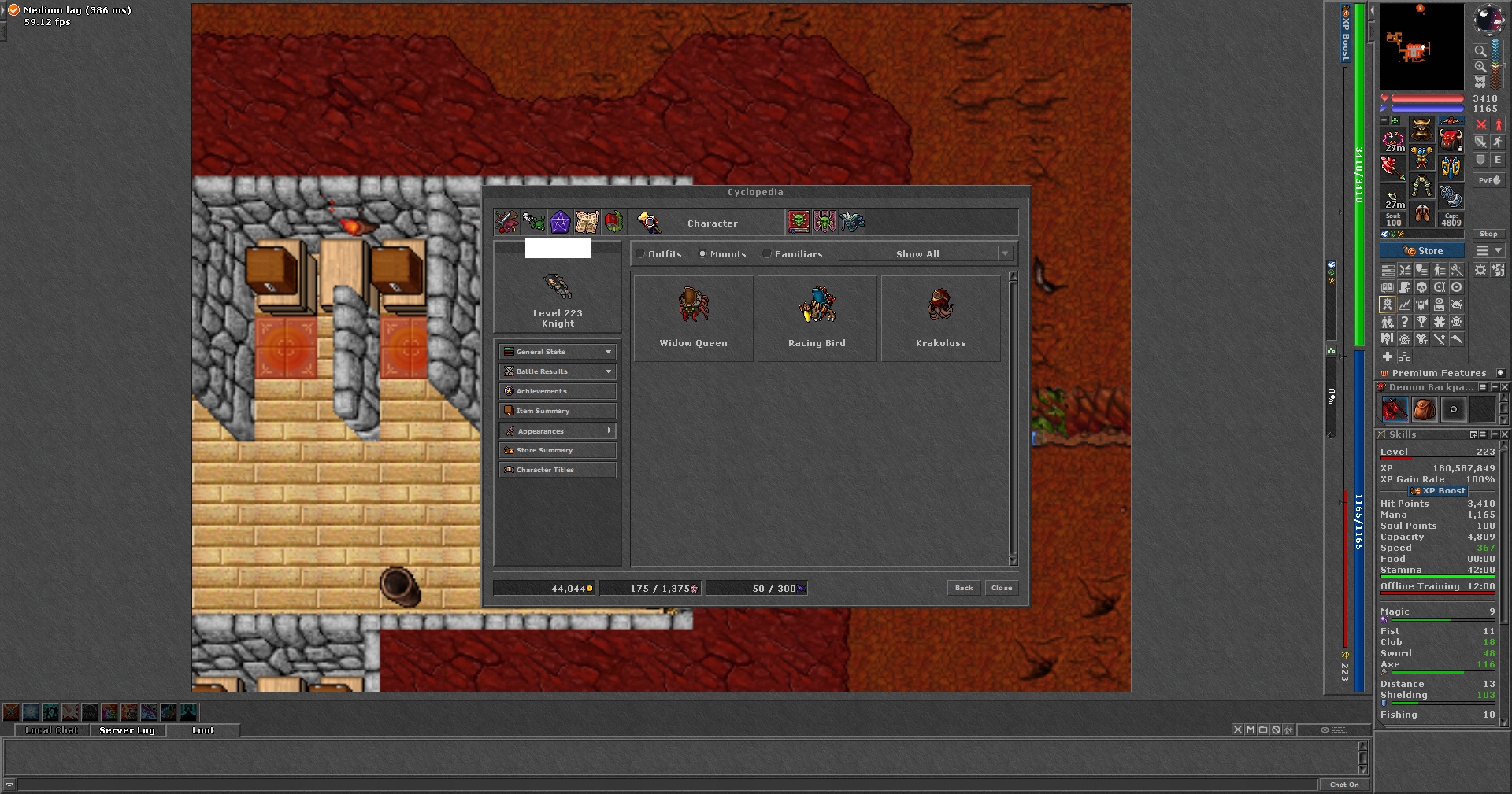Название предмета TIBIA 223 EK + 116/103 + 2 CHARMY + VUNIRA + EQ + FREE RK