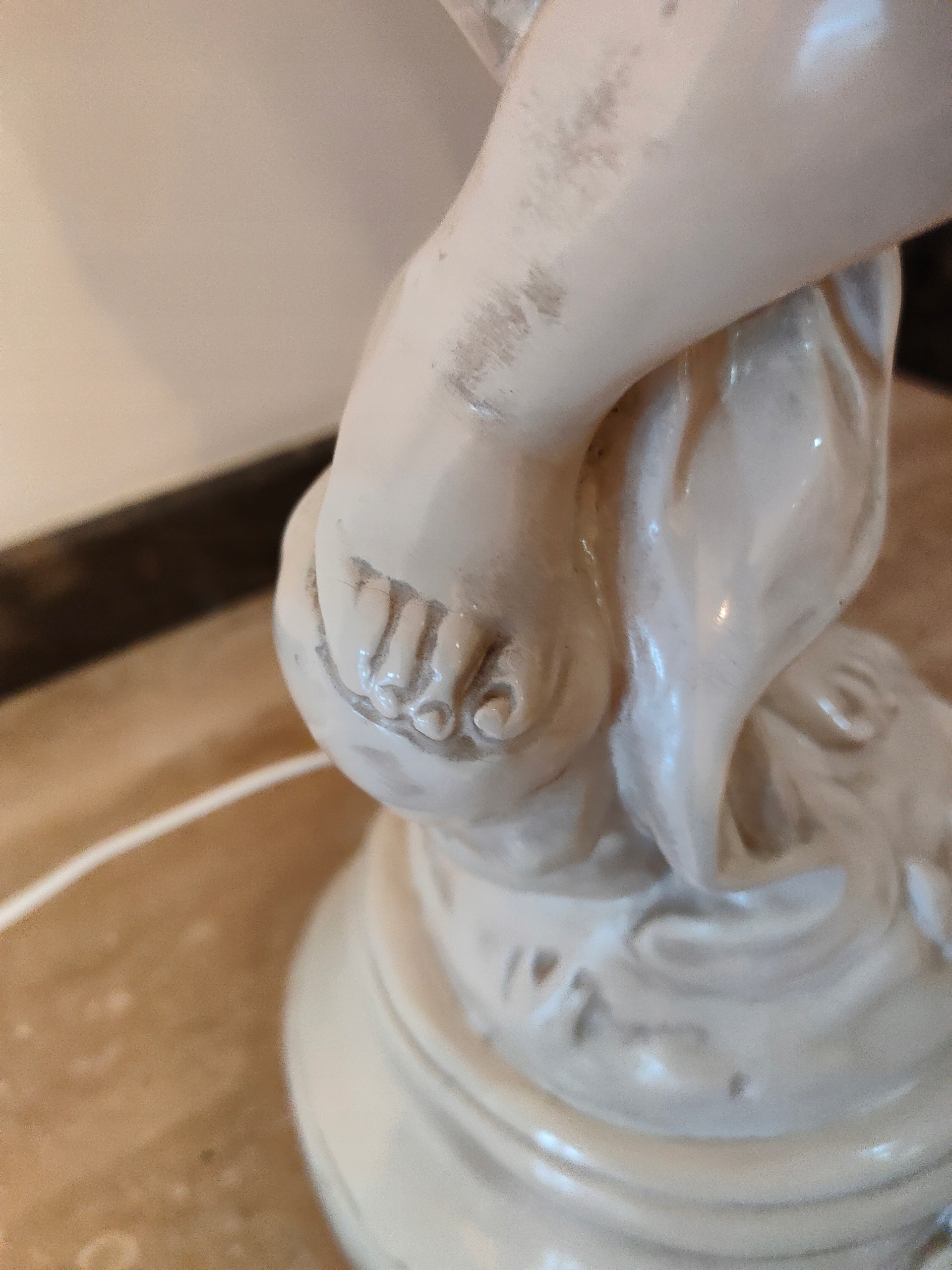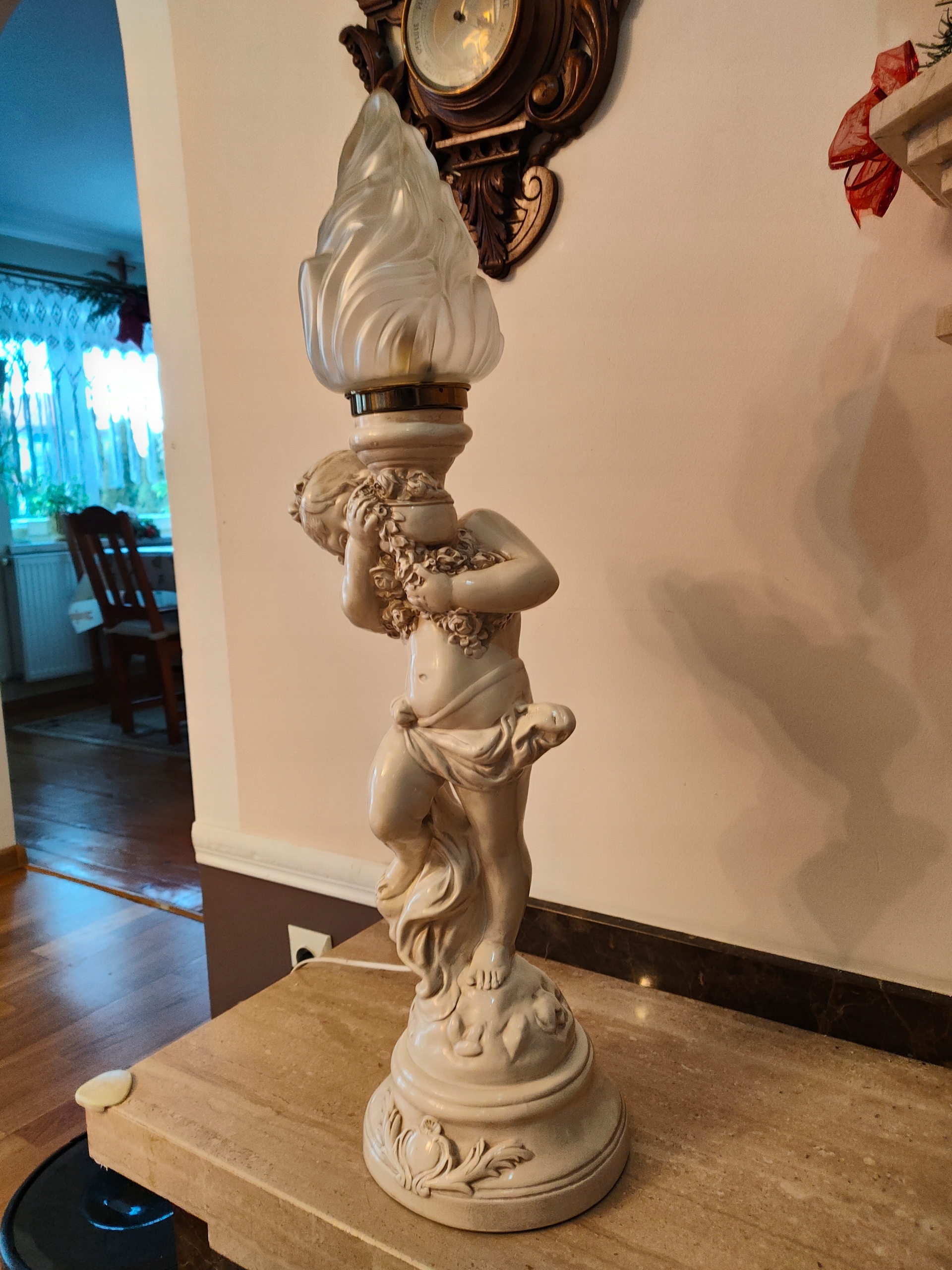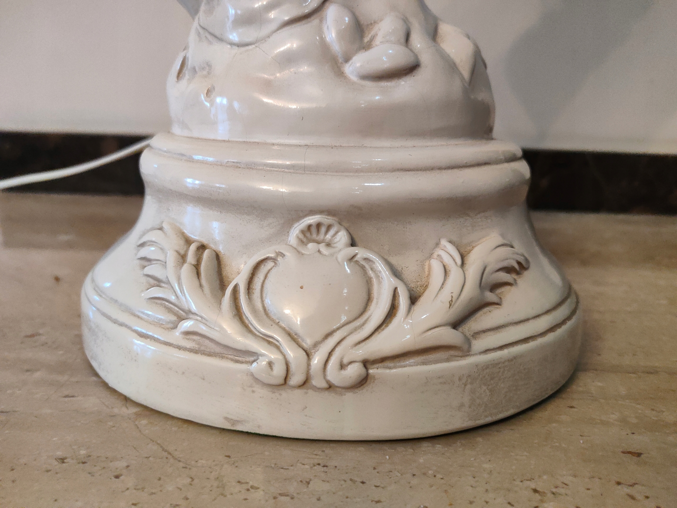 Lampa ceramiczna lup porcelanowa. z figurką CHERUBINA.w kolorze z kosci sloniowej.
