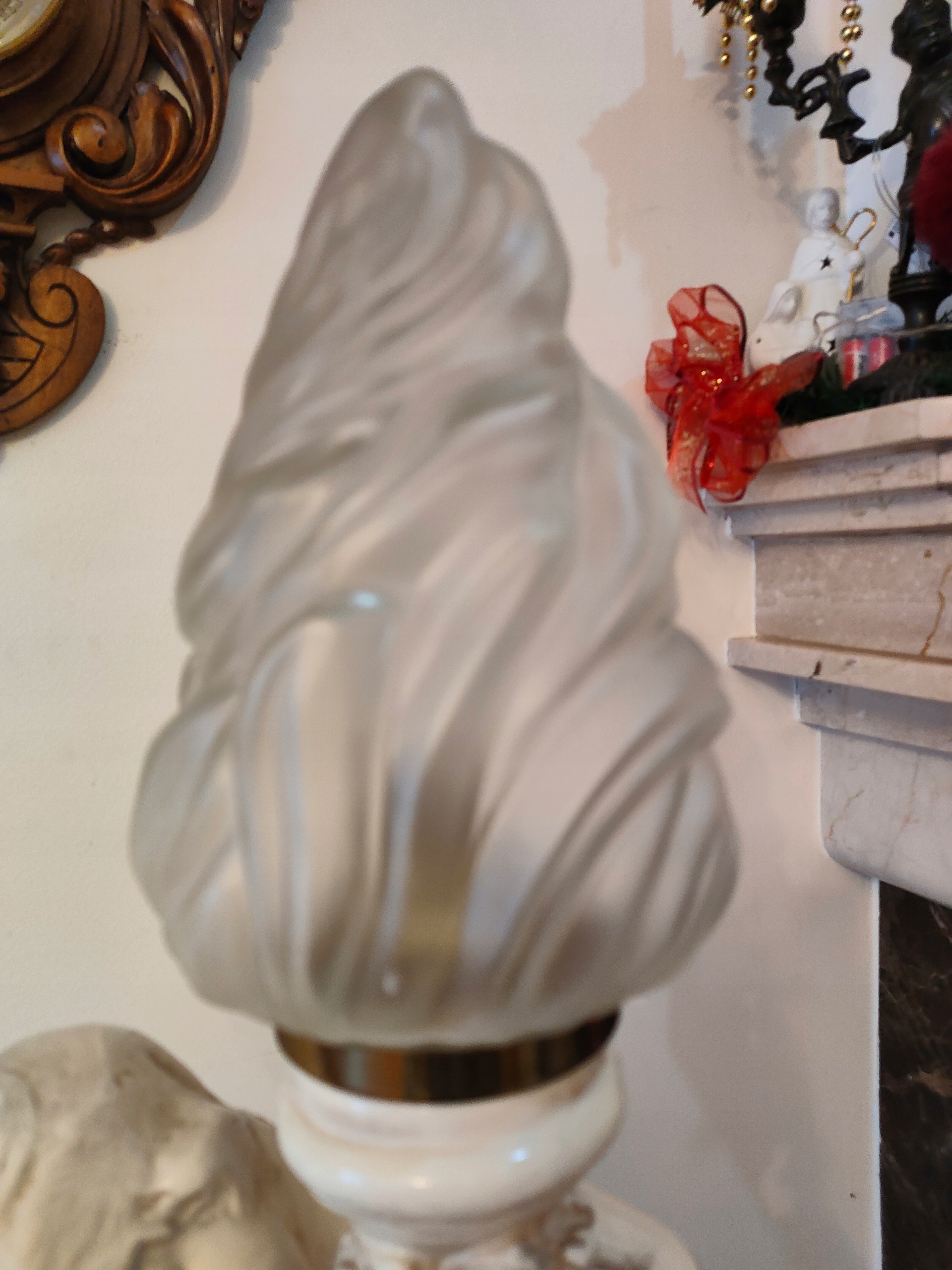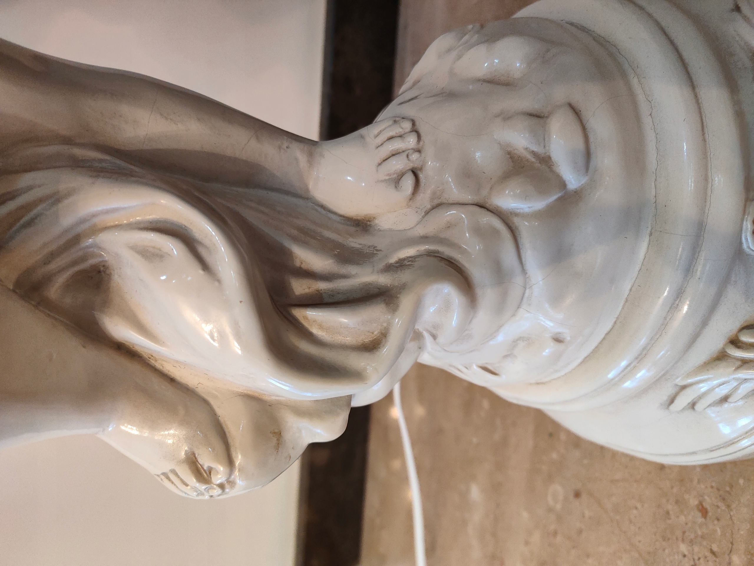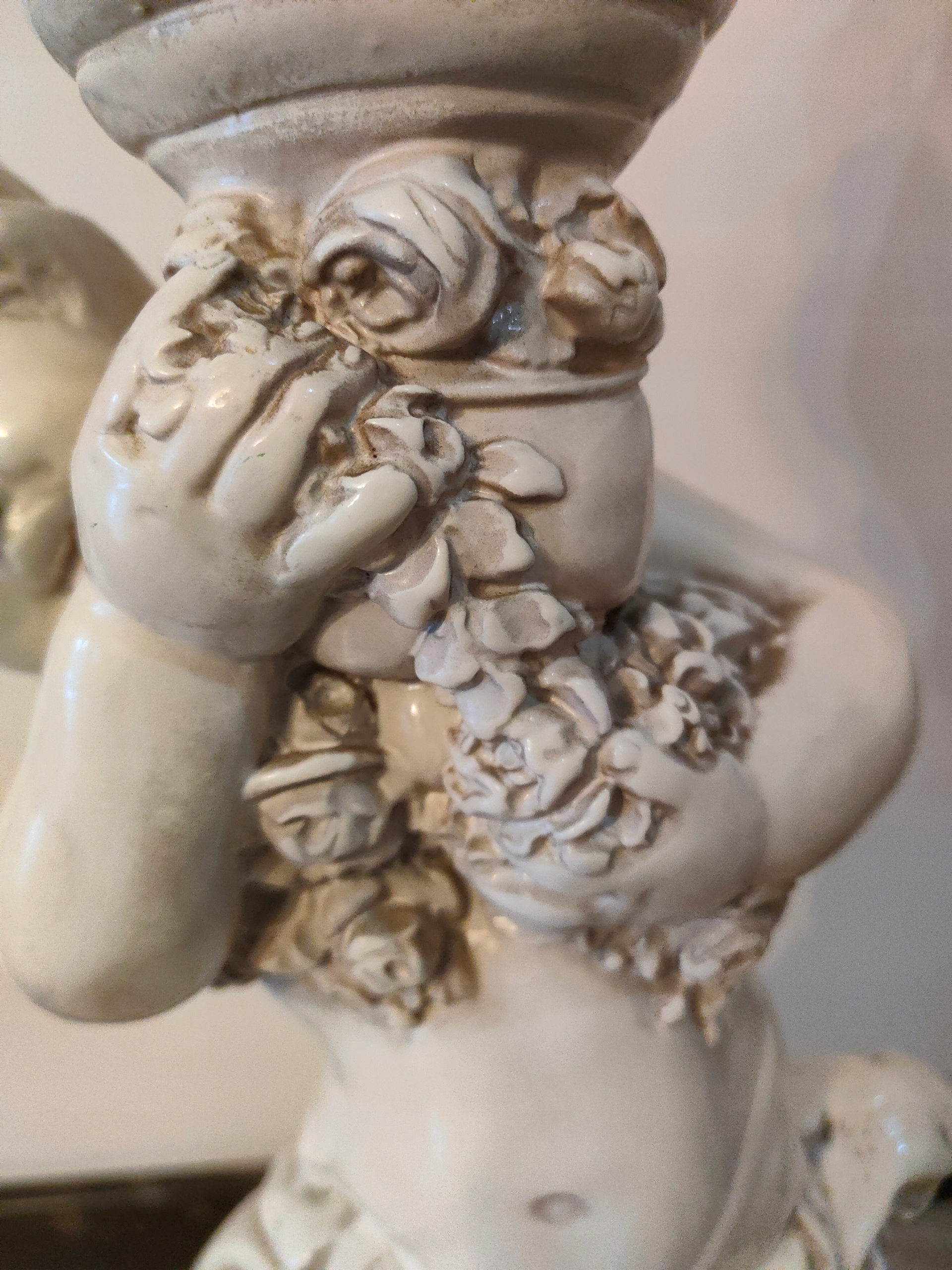 Lampa ceramiczna lup porcelanowa. z figurką CHERUBINA.w kolorze z kosci sloniowej.