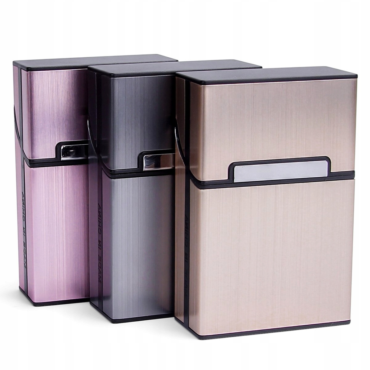 Metalowe etui na papierosy wykonane z aluminium. Zestaw obejmuje 3 sztuki w kolorach: szary, różowe złoto i szampan. Zamknięcie magnetyczne zapewnia pewne trzymanie papierosów i łatwe otwieranie. Powierzchnia wykonana w obróbce oksydacyjnej, która nie blaknie. Elegancki wygląd ✨