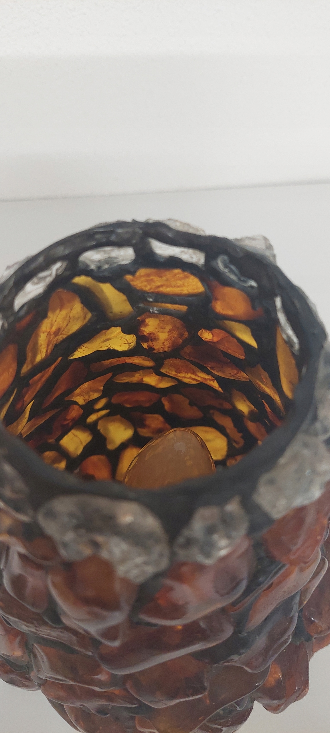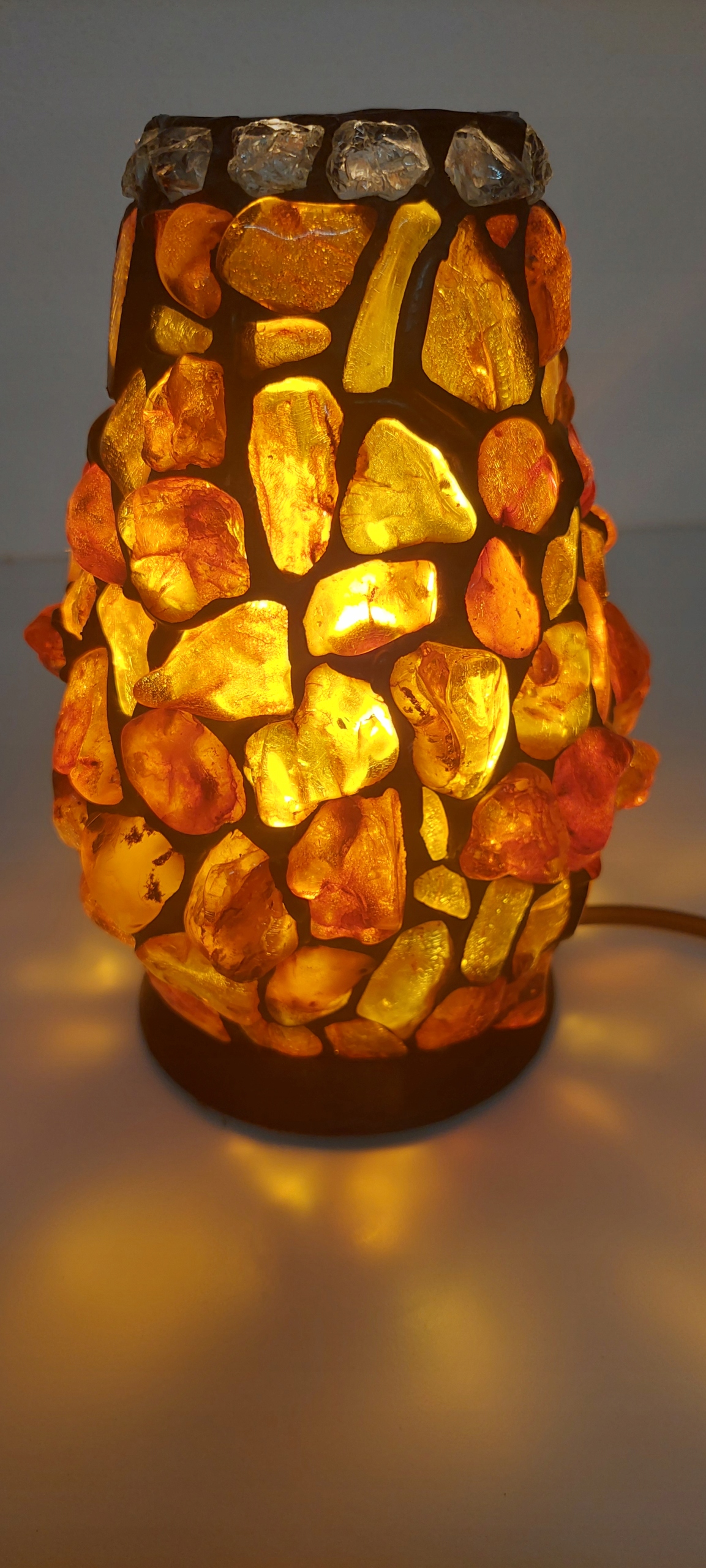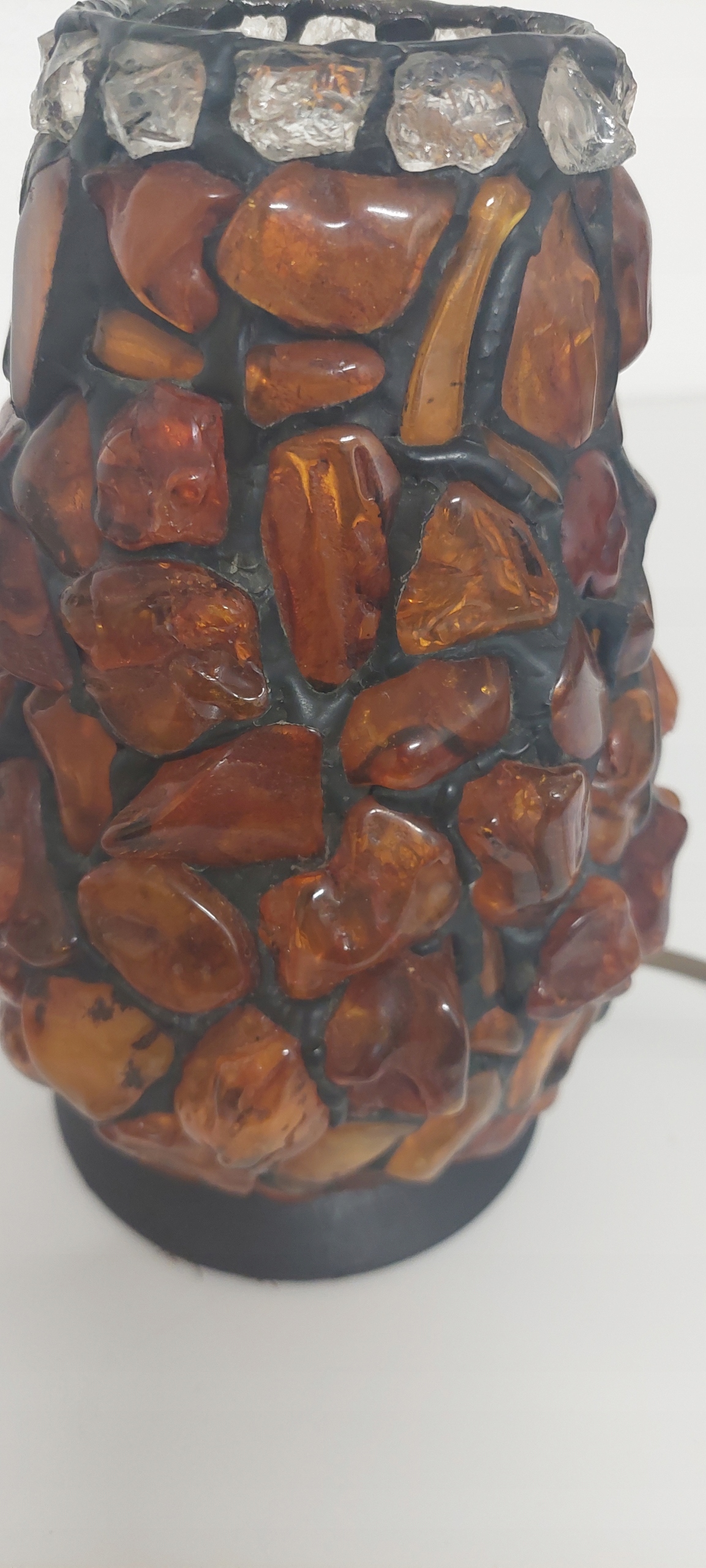 Lampka stołowa o wymiarach wysokość 22cm, średnica w brzuścu 14cm. Stan bardzo dobry