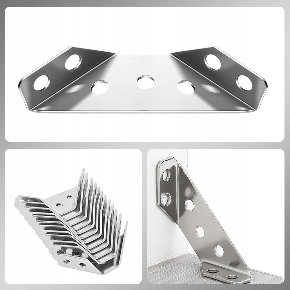 Wykorzystując zasadę stabilnej trójkątnej stabilności, nasz łącznik narożny do mebli ze stali nierdzewnej może z łatwością naprawić meble i rozwiązać problem ich chwiania się. Trapezowa konstrukcja wsporników narożnych jest wyposażona w 7 otworów do mocowania, które mogą zabezpieczyć meble z trzech stron, dzięki czemu są one bardziej solidne i wytrzymałe niż zwykłe łączniki narożne w kształcie litery L.