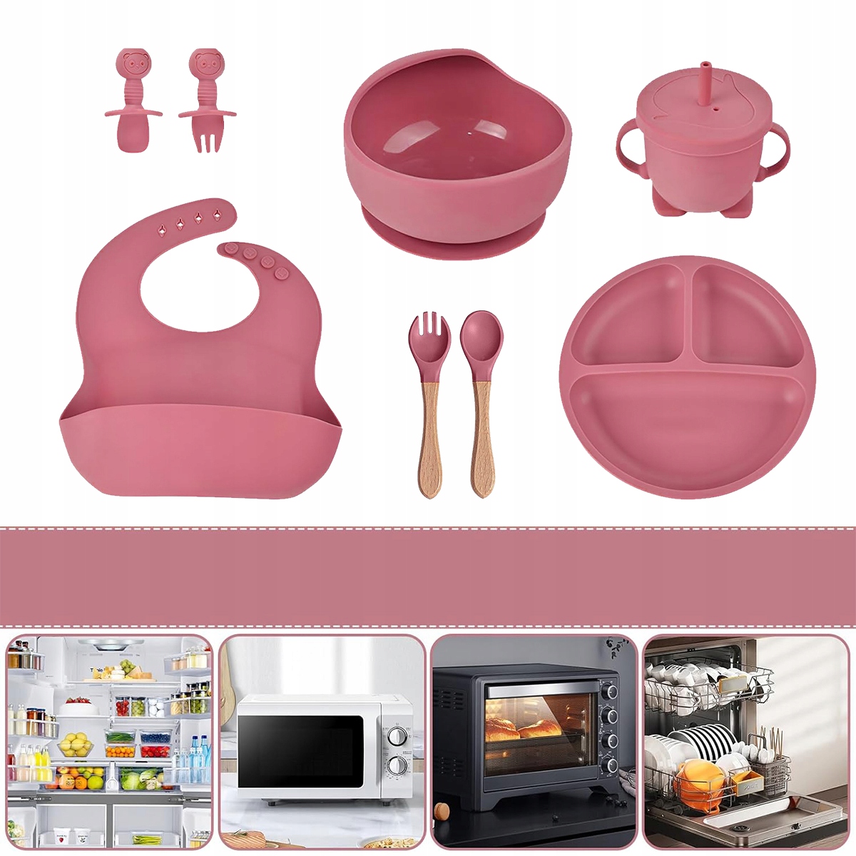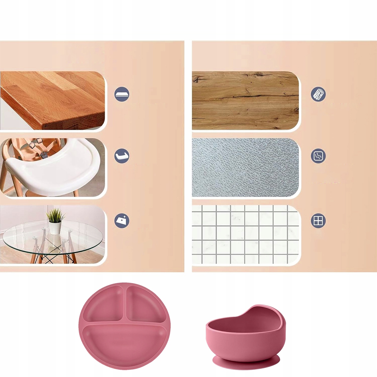 Wykonane z trwałego silikonu, praktycznie niezniszczalnego. Koniec z tłuczonymi talerzami – to idealny materiał na zastawę stołową dla dzieci. Można go również bezpiecznie używać w lodówce, kuchence mikrofalowej, a nawet piekarniku. Przed użyciem należy mocno docisnąć talerz/miskę, aby usunąć pęcherzyki powietrza z dna, co zapewni, że sztućce dobrze przylegają do stołu.