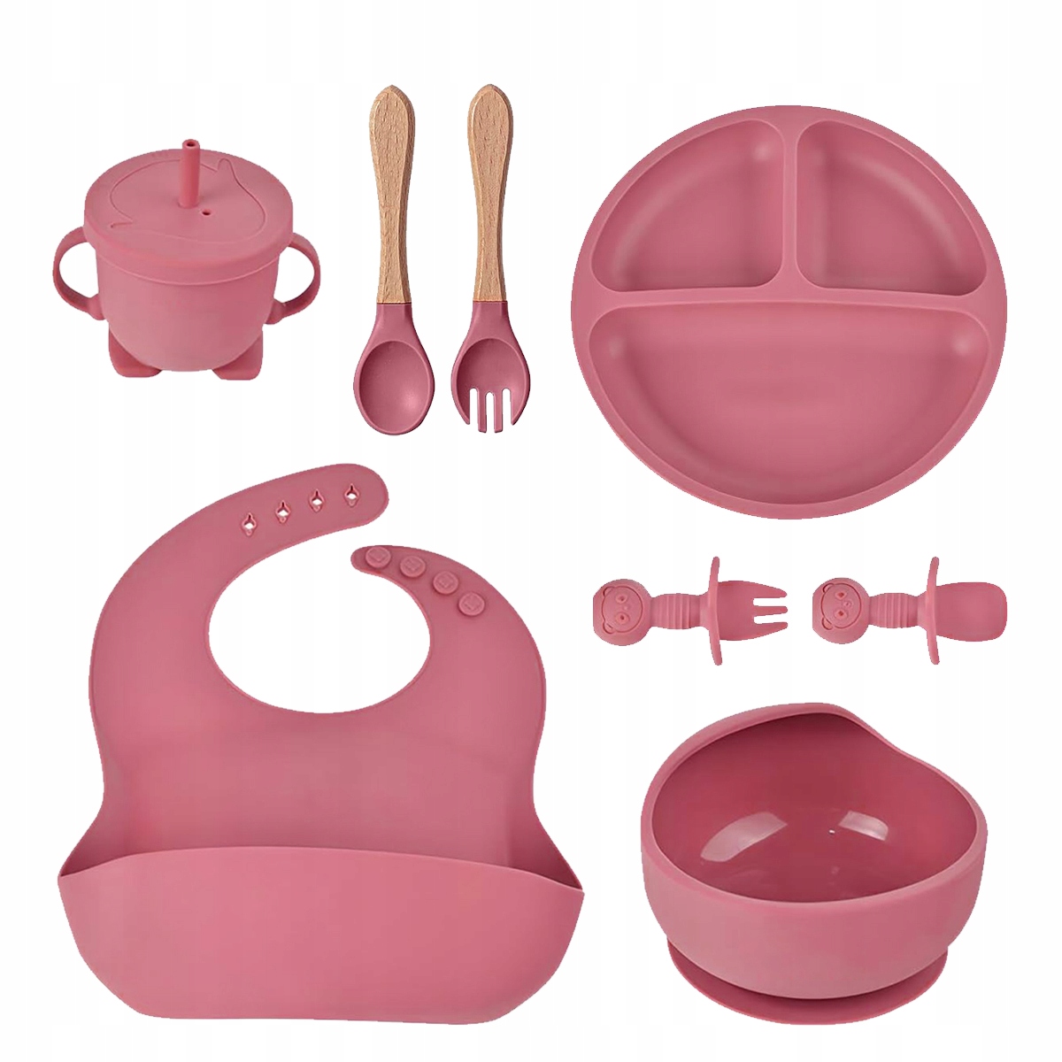 ➡️Kompletny zestaw z dużą ilością elementów - otrzymujesz pełen zestaw obiadowy dla Twojego dziecka - sztućce, talerz, miskę, kubek oraz śliniak