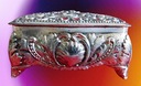 Przedmiot aukcji to puzderko/szkatułka widoczne na foto. Zostało przywiezione z Niemiec - kupione na trodelhalle dla kolekcjonerów. Wykonano je z posrebrzanego metalu. Stan jak na foto.