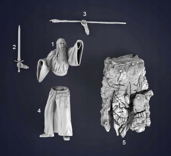 Model czarodzieja jest wydrukiem w wysokiej rozdzielczości z żywicy UV premium. Żywica premium od standardowej różni się jeszcze lepszym odwzorowaniem szczegółów i zwiększoną elastycznością. Podstawka drukowana z PLA w technologii FDM. Materiały świetnie nadają się do obróbki (piłowanie, klejenie, malowanie).