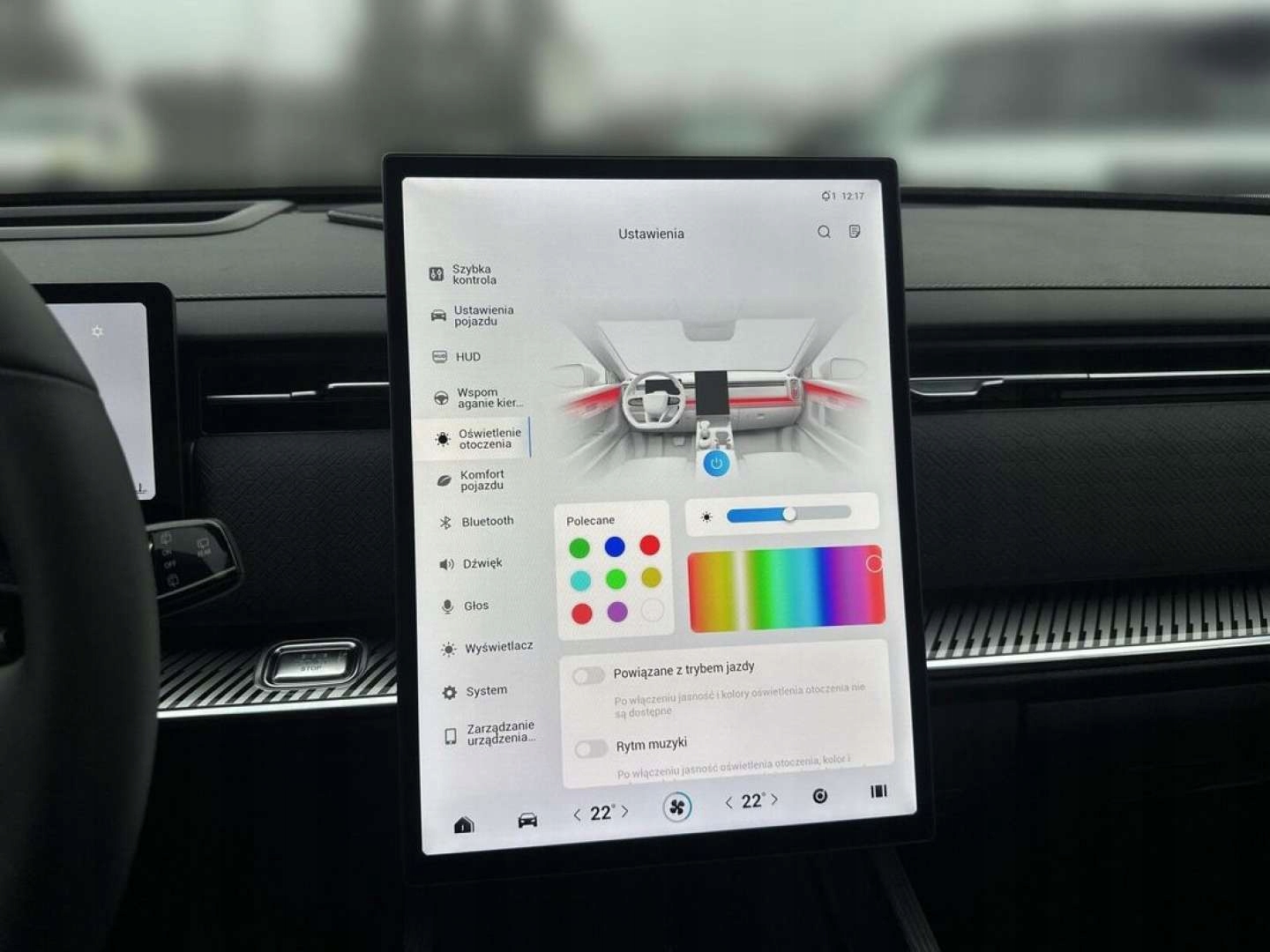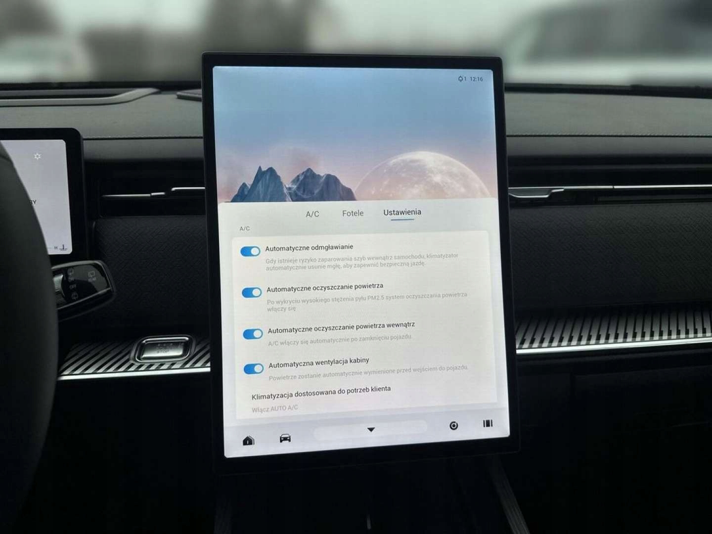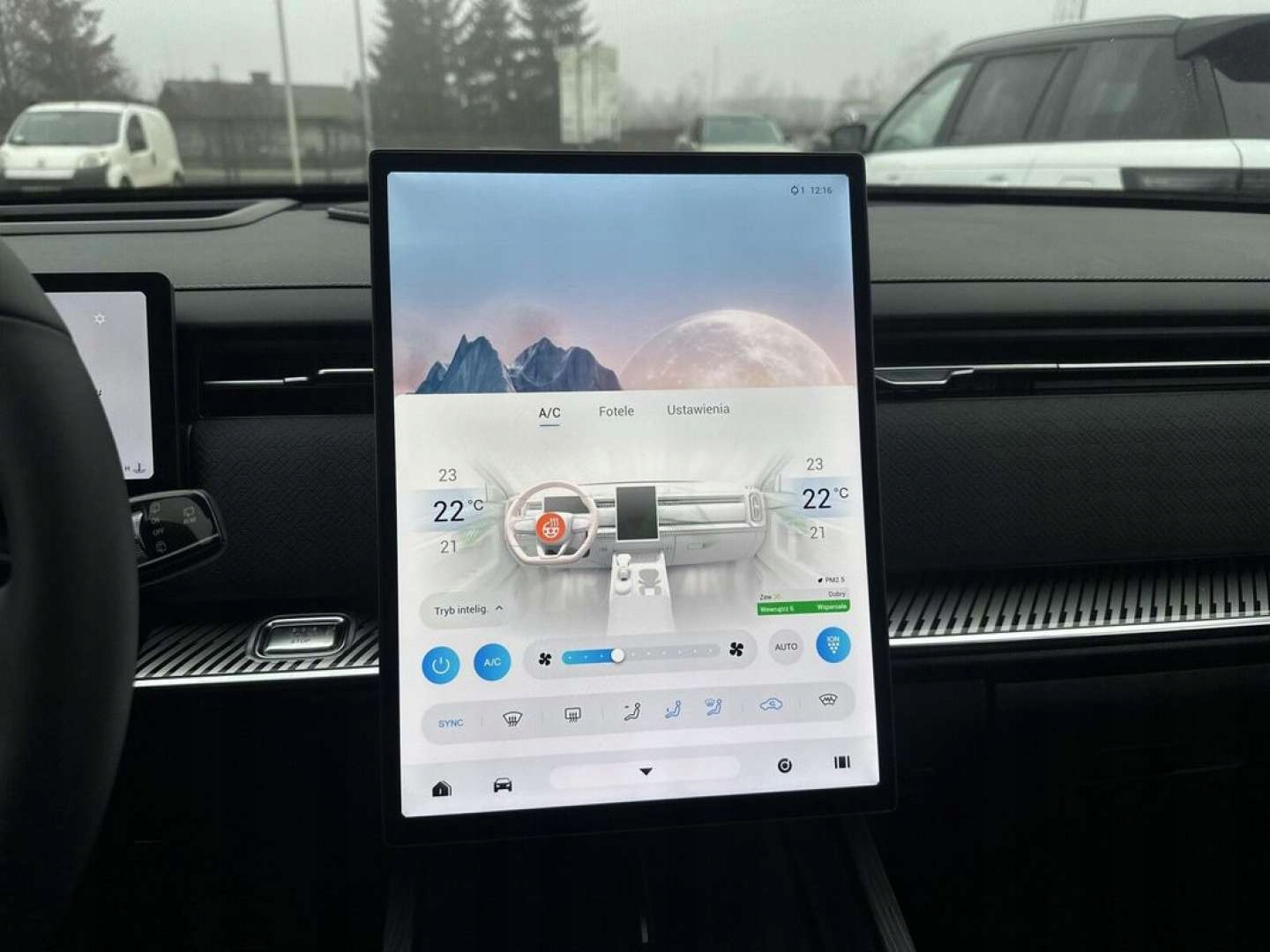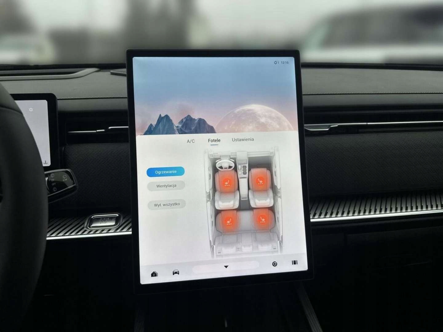 System multimedialny z ekranem dotykowym o przekątnej 14.8”System nawigacji satelitarnejSkórzana tapicerkaWyświetlacz przezierny HUDSystem oczyszczania powietrza w kabiniePodgrzewanie kierownicyFotele przednie podgrzewaneoraz wentylowane z elektryczną regulacją Klimatyzacja dwustrefowa z automatyczną regulacją temperaturyFunkcja pamięci położenia fotela kierowcy oraz lusterek zewnętrznychSystem bezkluczykowego dostępu i uruchamiania pojazdu HelloJaecoo - inteligentny system sterowania wybranymi funkcjami pojazdu za pomocą poleceń głosowych System audioSony z 8. głośnikami Cyfrowy zestaw wskaźników o przekątnej 10.25"Bezprzewodowa obsługa Android Auto i Apple Car PlayPrzedni podłokietnik ze schowkiem i funkcją chłodzeniaAmbientoweoświetlenie wnętrza Bezprzewodowa ładowarka dosmartfona (moc 50W)