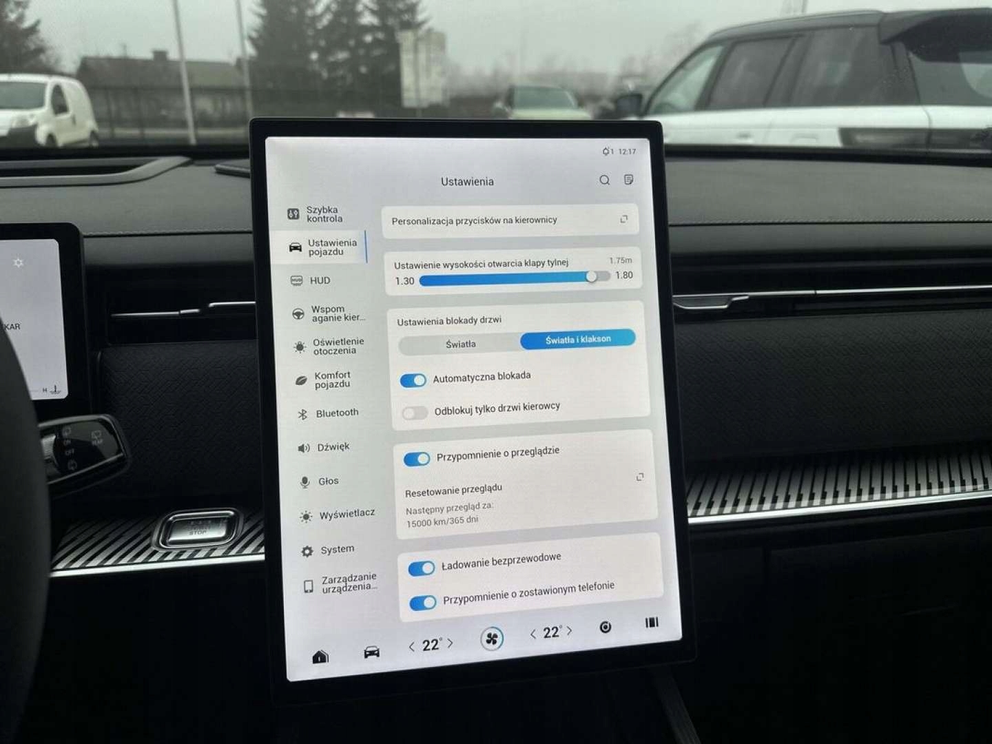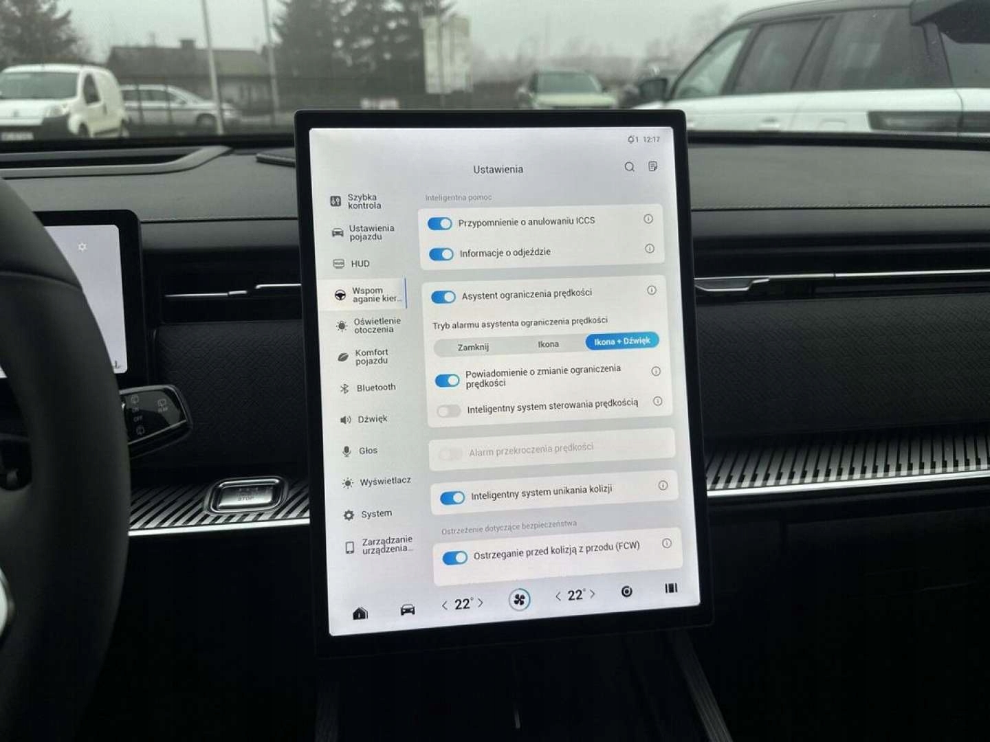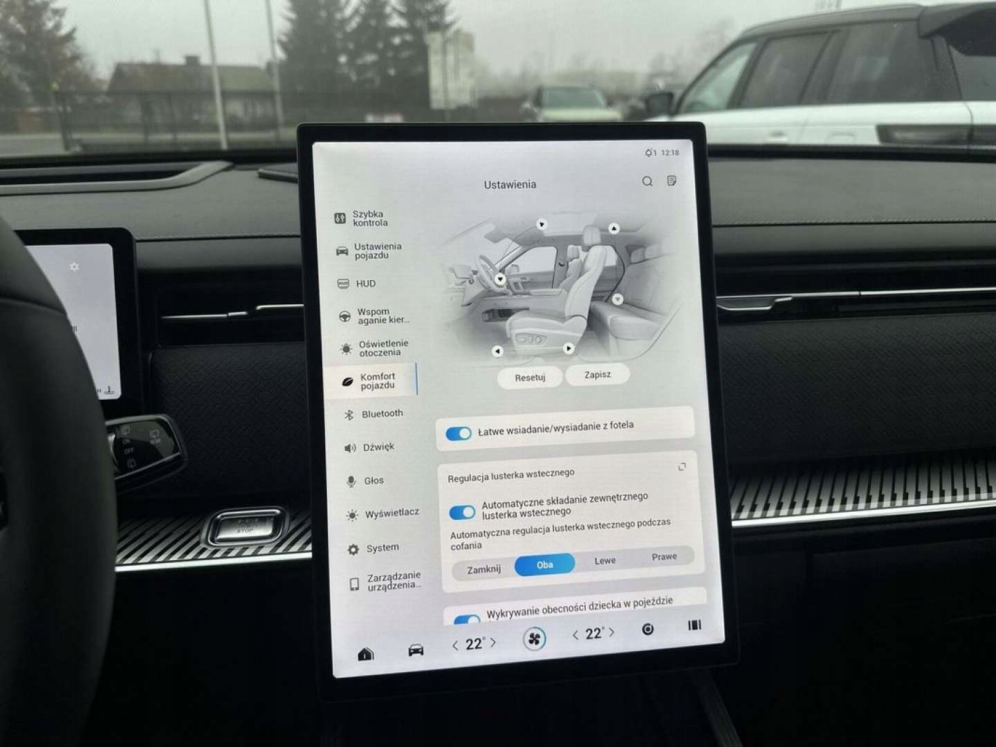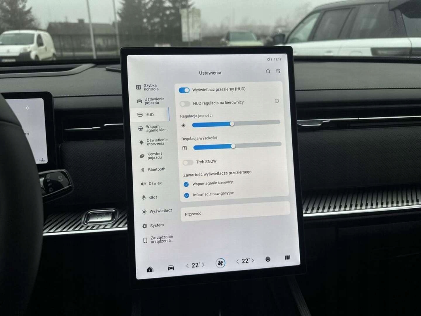System multimedialny z ekranem dotykowym o przekątnej 14.8”System nawigacji satelitarnejSkórzana tapicerkaWyświetlacz przezierny HUDSystem oczyszczania powietrza w kabiniePodgrzewanie kierownicyFotele przednie podgrzewaneoraz wentylowane z elektryczną regulacją Klimatyzacja dwustrefowa z automatyczną regulacją temperaturyFunkcja pamięci położenia fotela kierowcy oraz lusterek zewnętrznychSystem bezkluczykowego dostępu i uruchamiania pojazdu HelloJaecoo - inteligentny system sterowania wybranymi funkcjami pojazdu za pomocą poleceń głosowych System audioSony z 8. głośnikami Cyfrowy zestaw wskaźników o przekątnej 10.25"Bezprzewodowa obsługa Android Auto i Apple Car PlayPrzedni podłokietnik ze schowkiem i funkcją chłodzeniaAmbientoweoświetlenie wnętrza Bezprzewodowa ładowarka dosmartfona (moc 50W)