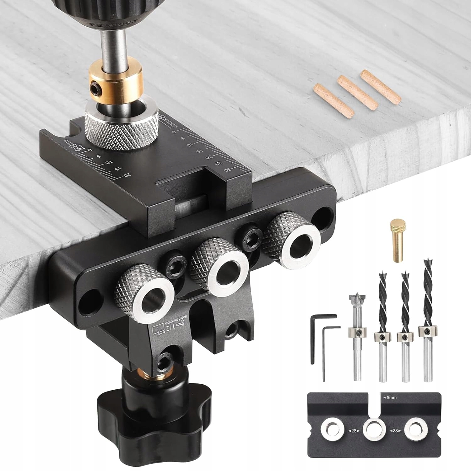 ✨ Zawiera zacisk 3 w 1 do otworów, mosiężny ogranicznik, czteroczęściowy zestaw wierteł i kołków, klucz imbusowy, pomoc w pozycjonowaniu i inne akcesoria.