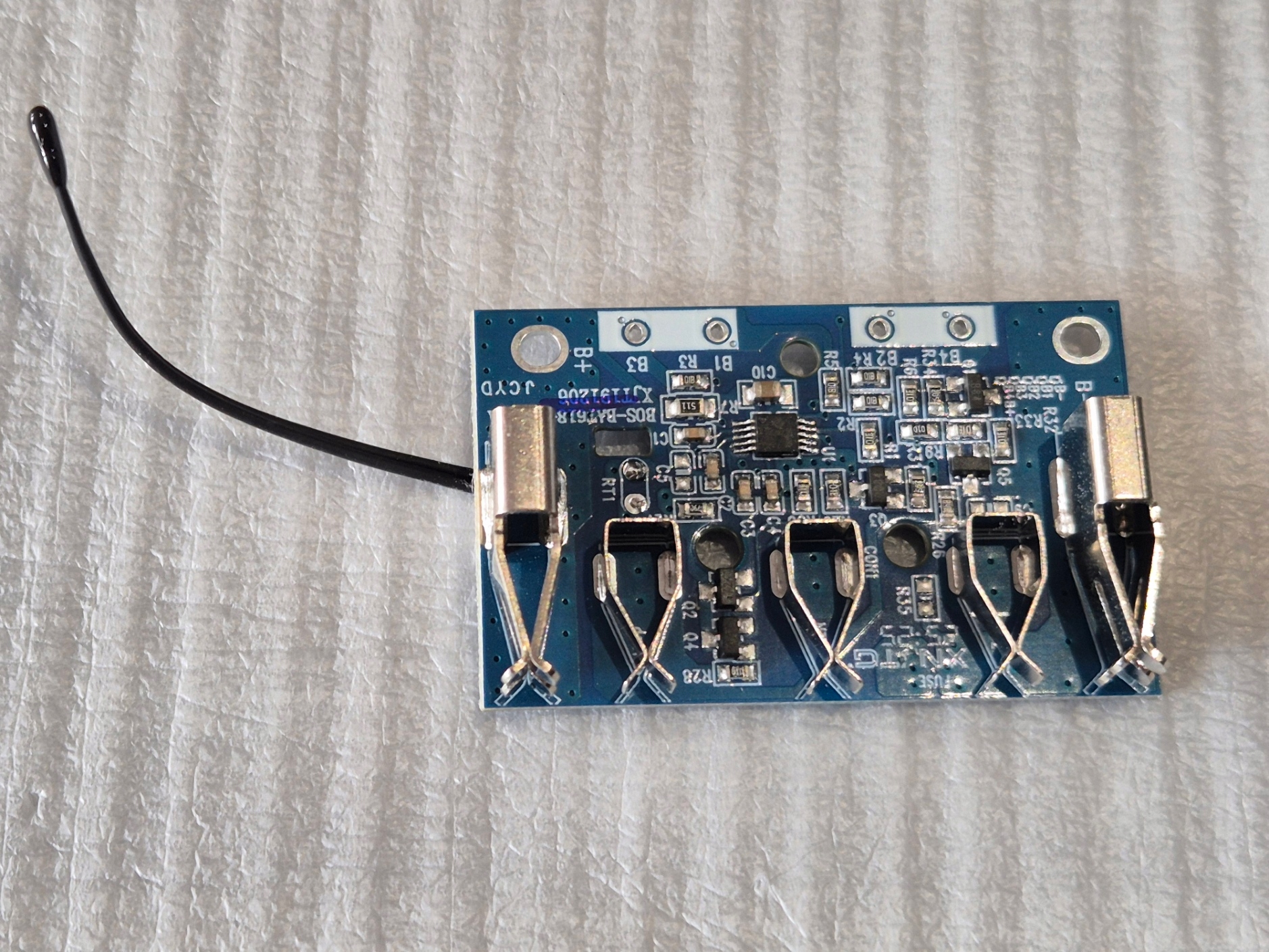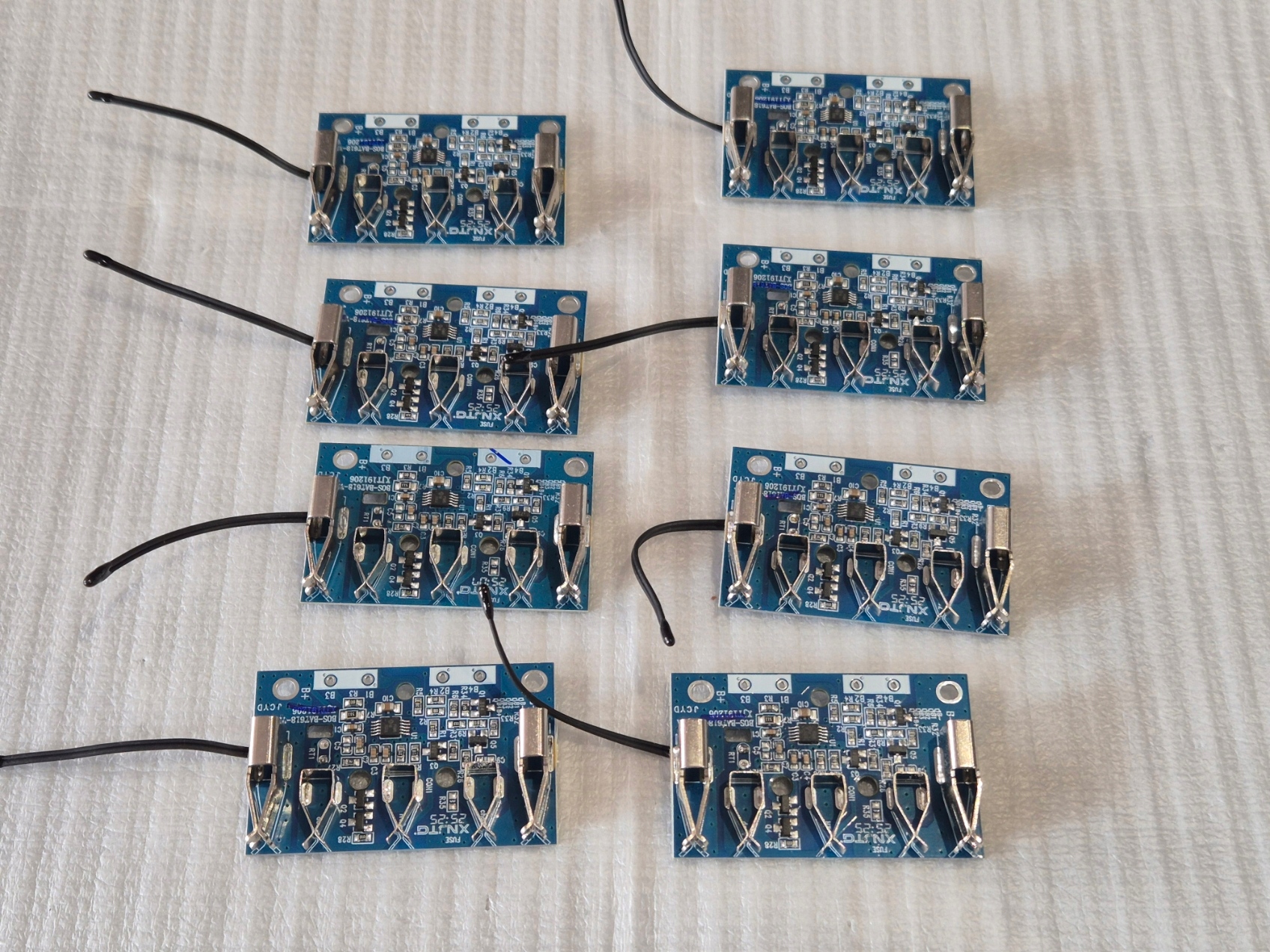 Przed montażem wszystkie akumulatory powinny mieć takie samo napięcie (+- 0,1V). Jeśli napięcie jednej baterii różni się od napięcia drugiej baterii, płytka drukowana uruchomi mechanizm zabezpieczający, a ładowarka nie będzie w stanie naładować akumulatora przez płytkę drukowaną, chroniąc w ten sposób akumulator