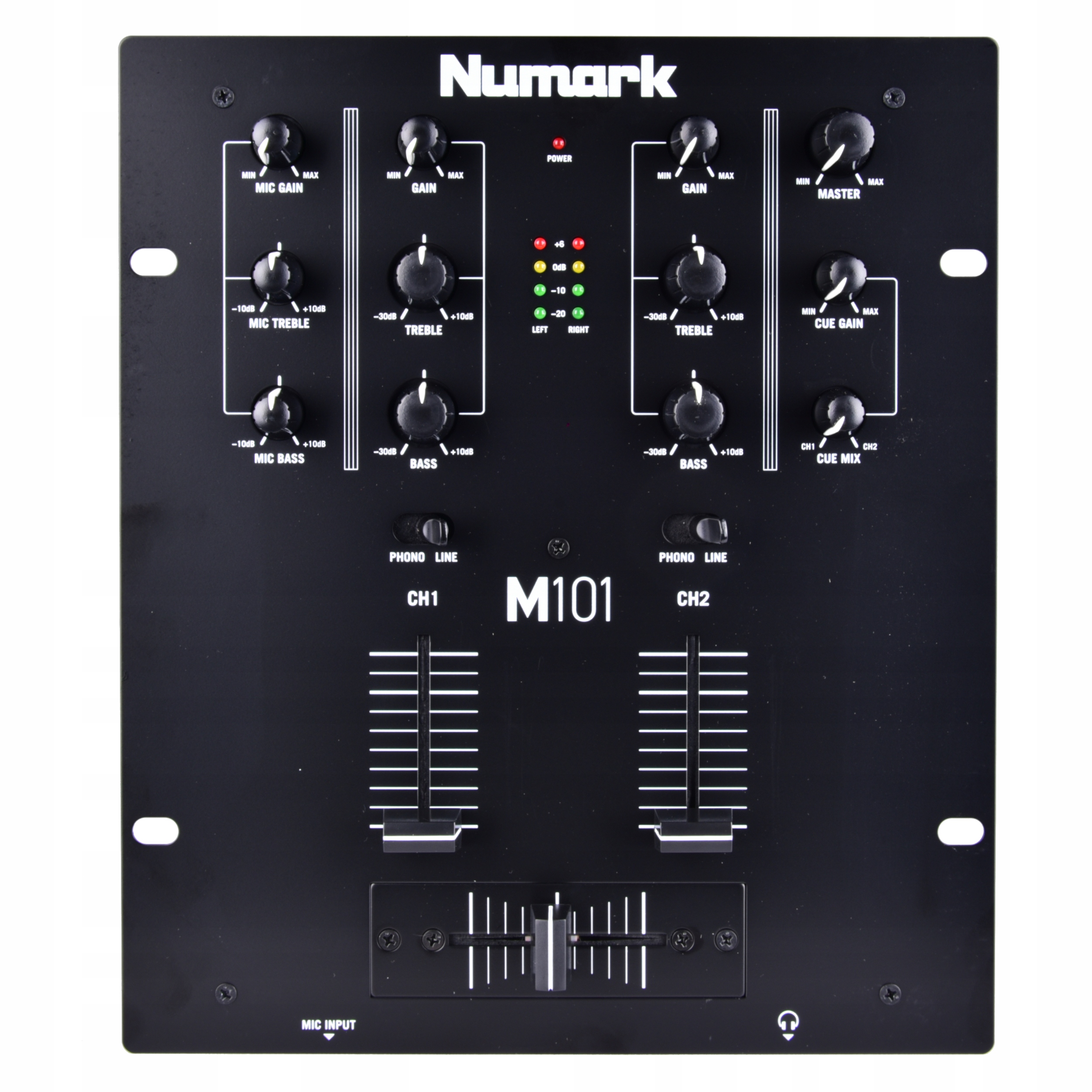 Podstawowa funkcja miksera jest dodatkowo wspierana przez wbudowaną korekcję brzmienia, aby dostosować je do panujących warunków akustycznych. Mikser posiada dwie pary wejść ze zmienną czułością (Phono/Line), crossfader, wejście mikrofonowe 1 oraz liniowe wyjście RCA. M101 może zostać zainstalowany w racku, oferując legendarną wytrzymałość Numark.