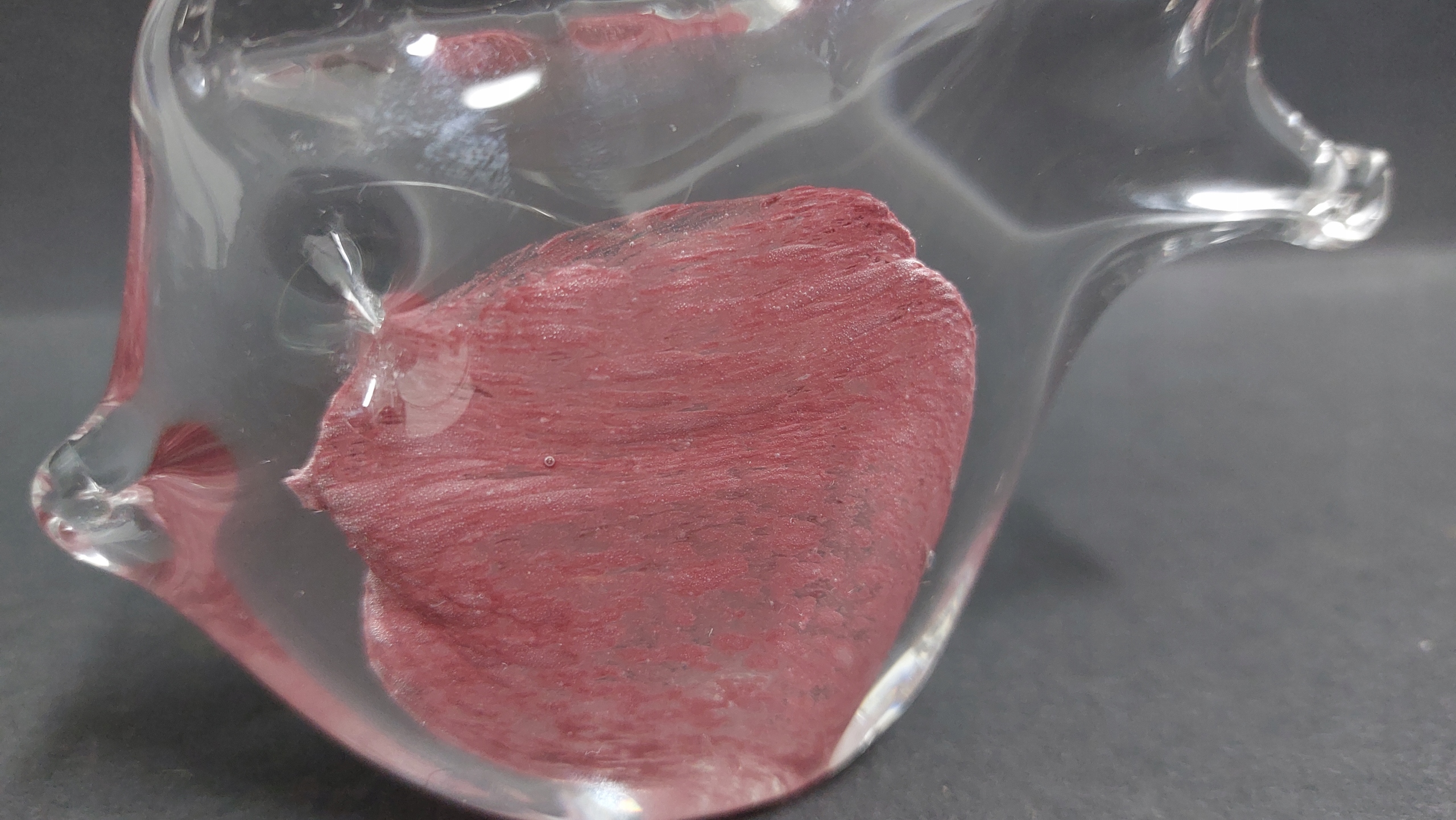 Urocza, szklana figurka rybka, przepięknie się prezentuje.