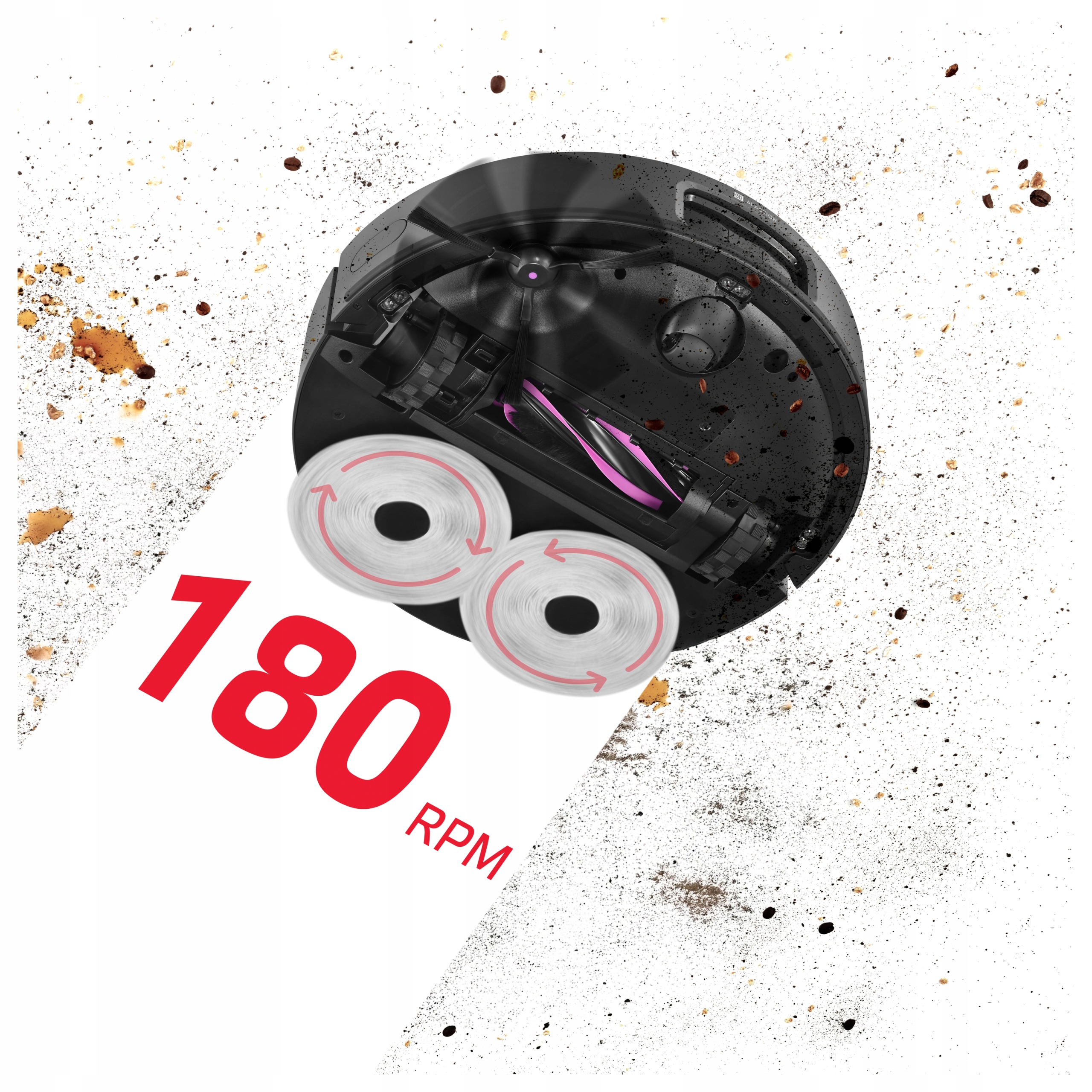 ✅ R90 Pro - definiuje na nowo funkcję mopowania w robotach sprzątających. Zapomnij o plamach czy zaschniętych zabrudzeniach. Dwa innowacyjne, wysuwane obrotowe mopy w R90 Pro domyją je wszystkie przy użyciu skutecznego płynu do podłóg. Ściereczki są dociskane do mytej podłogi z siłą 10 N, co w połączeniu z dynamicznym, okrężnym ruchem mopów o prędkości 180 obrotów na minutę umożliwia dokładne usuwanie zabrudzeń.