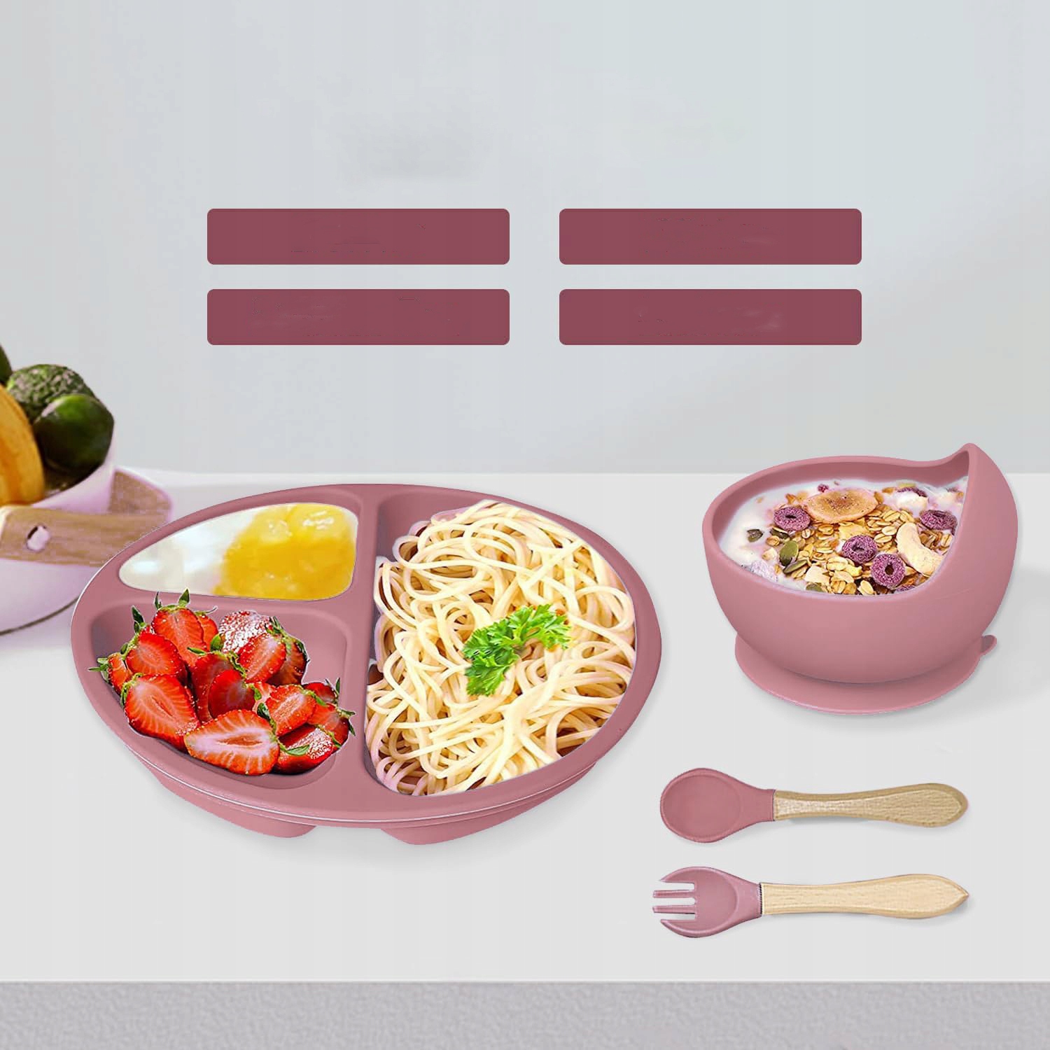👧Zawiera 2 silikonowe widelce, 2 silikonowe łyżki, silikonowy śliniaczek, silikonowy talerz, silikonową miskę i silikonowy kubek do picia.