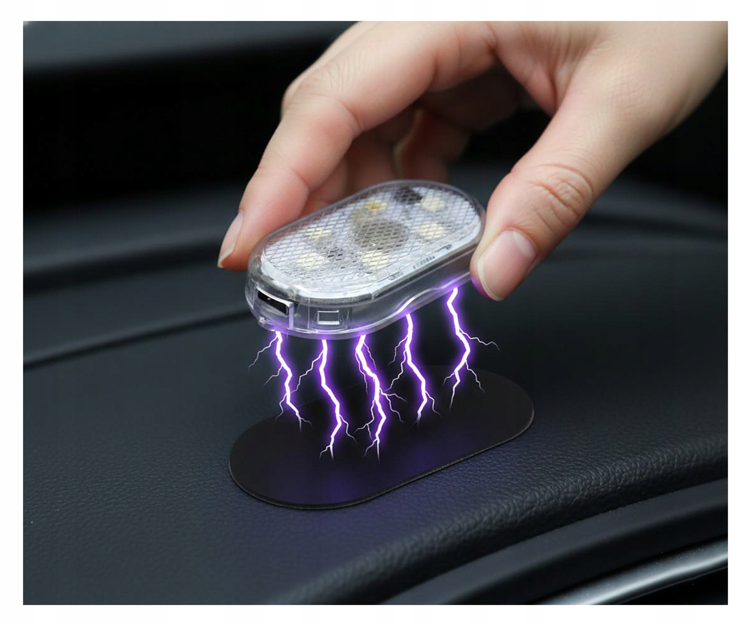➡️ Bez problemu zmieści się w wielu miejscach – pod deską rozdzielczą, w schowku, przy tunelu środkowym czy w bagażniku. Mimo kompaktowej formy zapewnia wyraźne, intensywne światło, które skutecznie buduje klimat we wnętrzu auta.