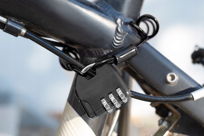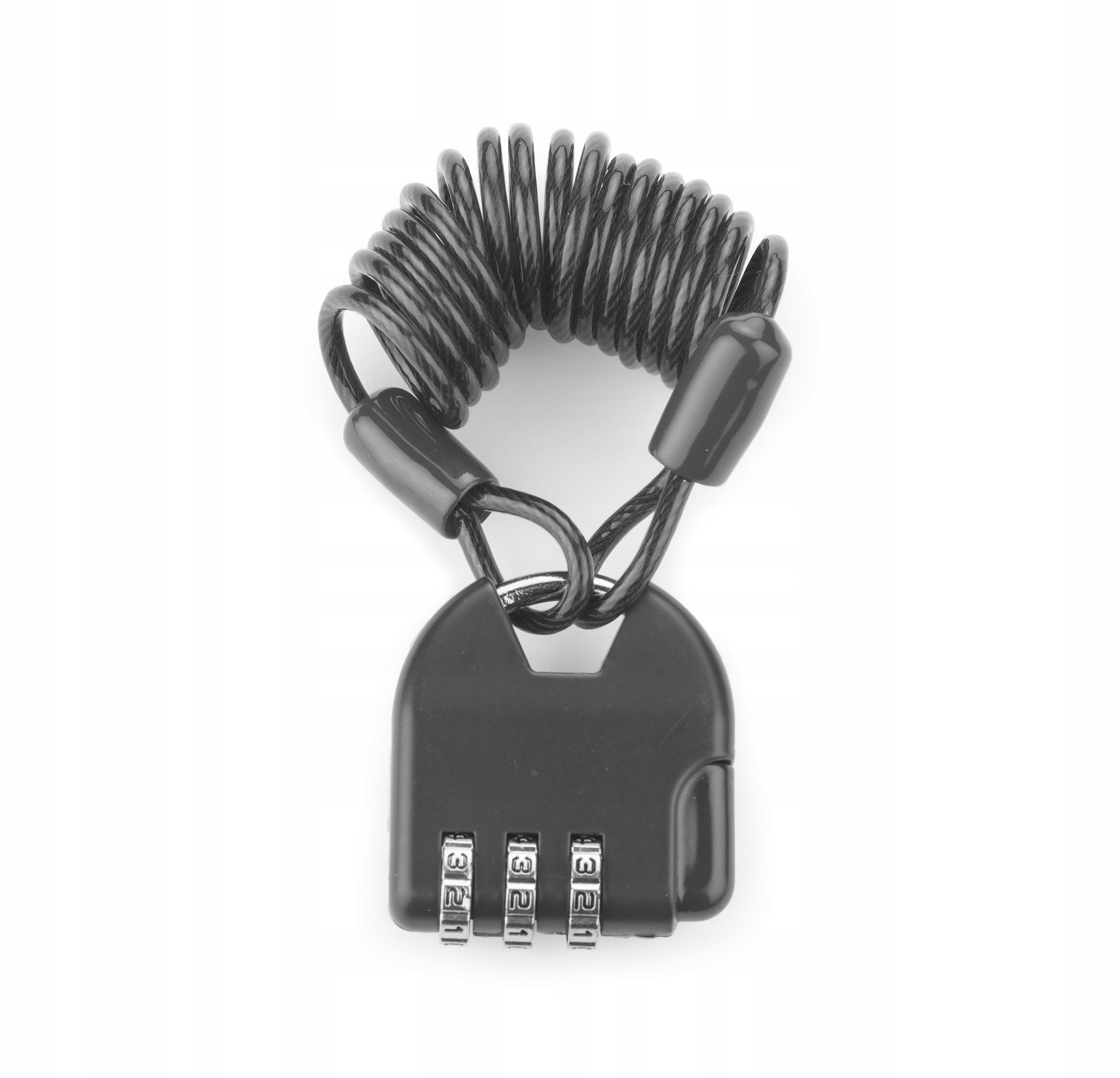 Otwierana za pomocą trzycyfrowego kodu, który sami ustawiamy (domyślny kod "000" zmieniamy poprzez naciśnięcie przycisku z boku kłódki i przestawienie kółek z cyframi na nowy kod).