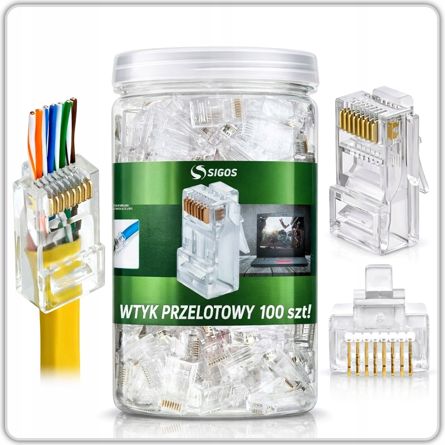 ⭐ Zestaw 100 sztuk przelotowych wtyków RJ-45 (8P8C)