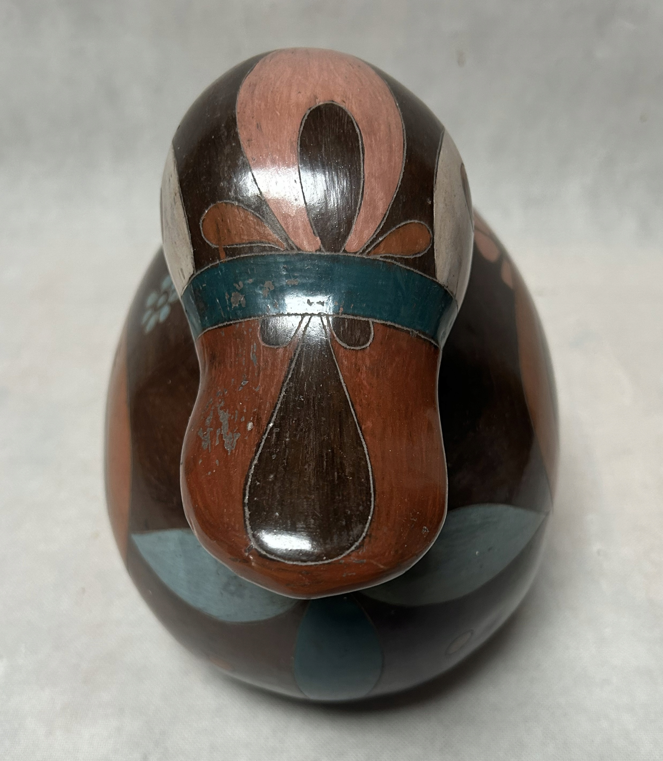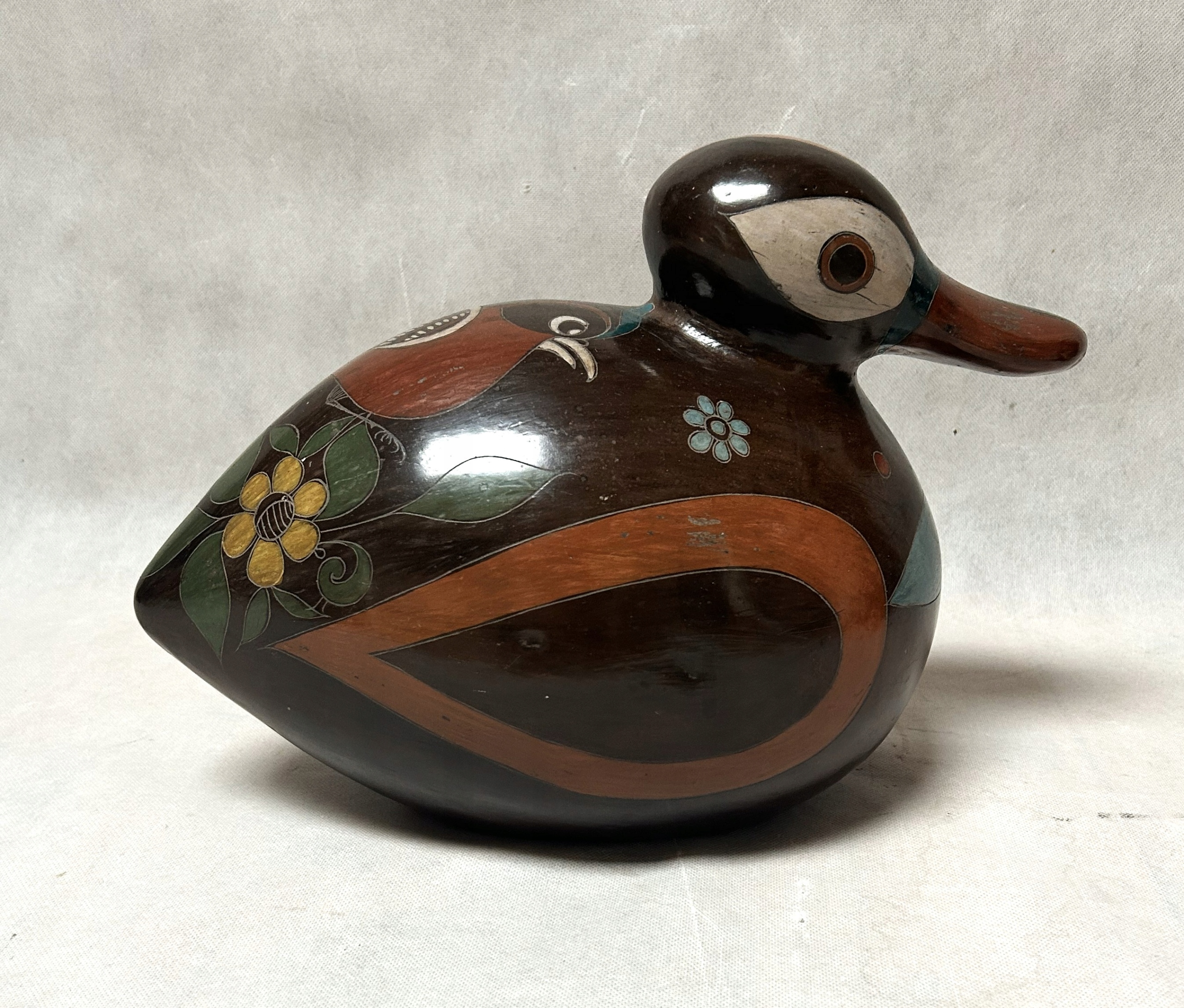 Ceramiczna figurka kaczki to prawdopodobnie meksykańska sztuka ludowa w stylu Tonala.