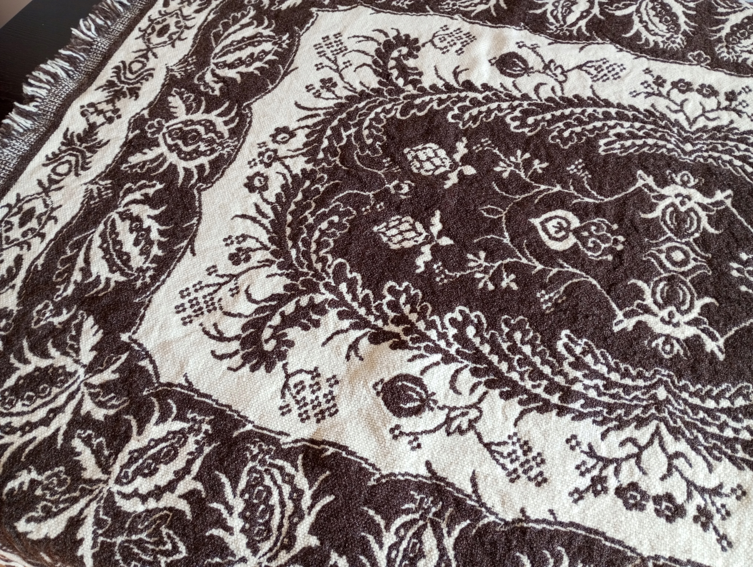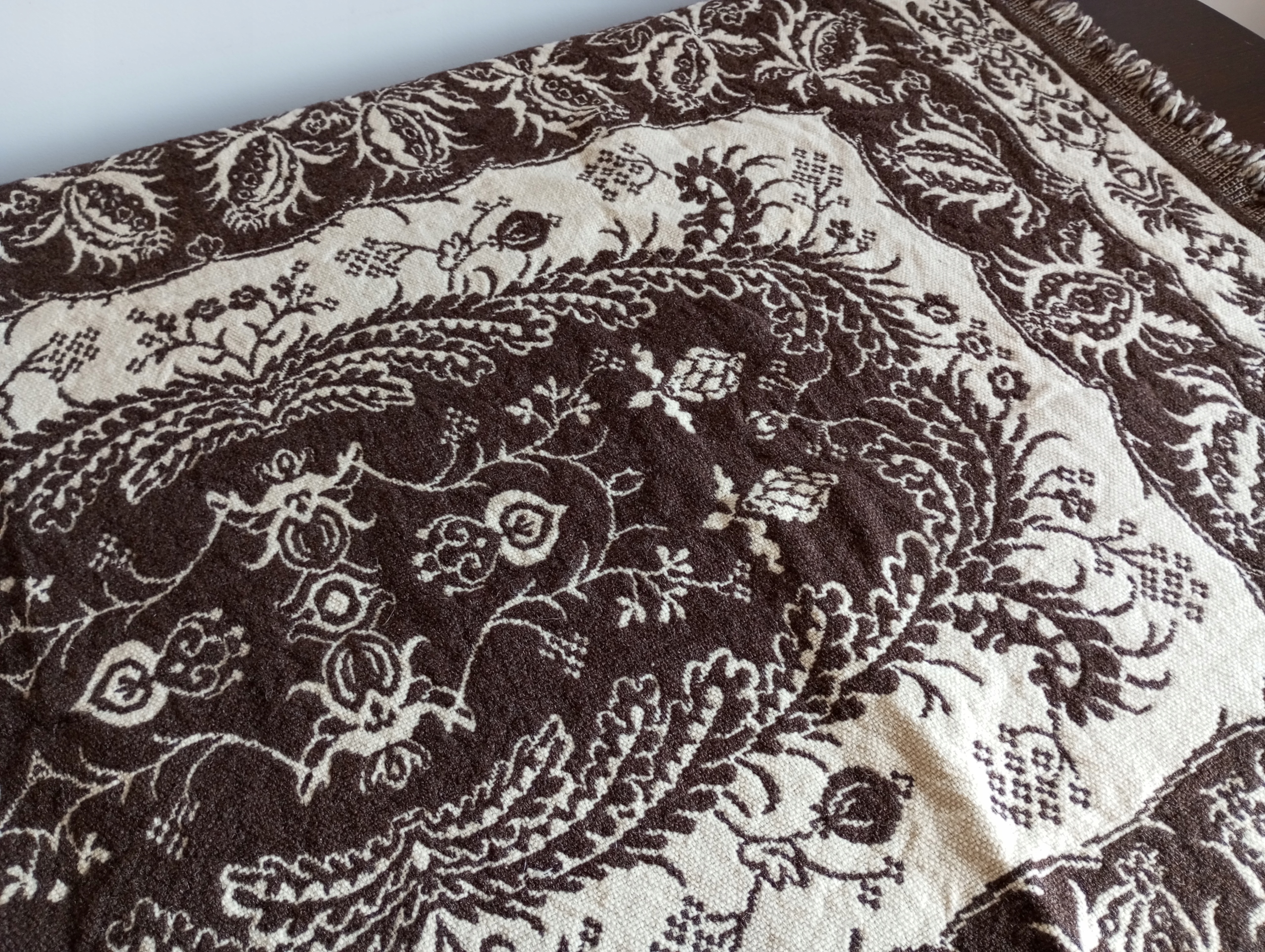 NARZUTA - KAPA WEŁNIANA - DWUSTRONNA O WYMIARACH 192 / 135 cm. Z 4 STRON FRĘDZLE. PO DŁUŻSZYCH BOKACH PO 5 cm., A PO KRÓTSZYCH 3 cm. NARZUTA W STANIE DOBRYM. GĘSTA I ZBITA. WZÓR WIDOCZNY NA ZDJĘCIU. KONIECZNIE ZOBACZ INNE MOJE AUKCJE I INFORMACJĘ OD SPRZEDAJĄCEGO. POLECAM I ZAPRASZAM DO LICYTACJI.
