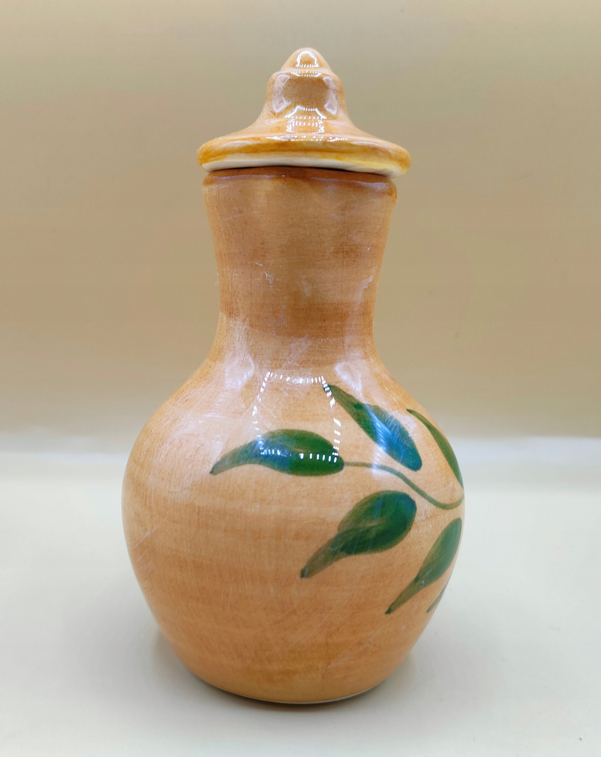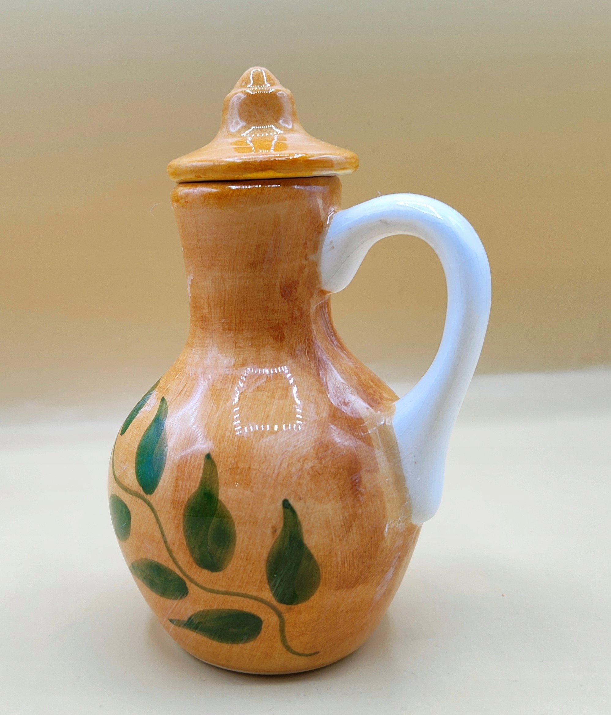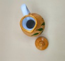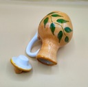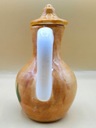 Porcelana. Wysokość mierzona z koreczkiem: 12,7cm, szerokość z rączką 9 cm, waga 190 gram. Pojemność 150 ml. Na żywo dzbaneczek prezentuje się równie przepięknie jak na zdjęciach. Przedmiot vintage, użytkowy. POLECAM !