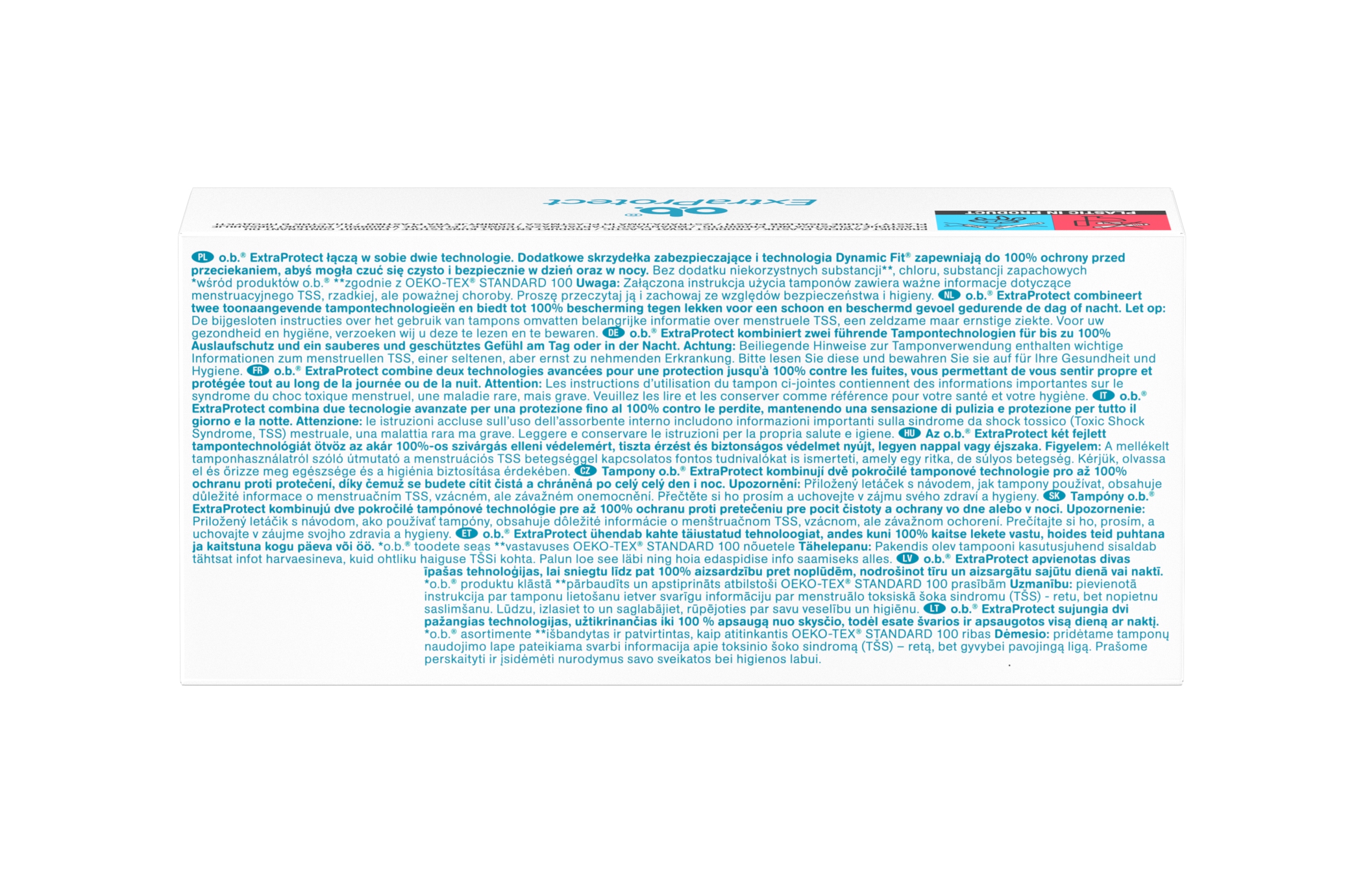 OB Extra Protect Super Comfort zapewniają optymalną i niezawodną ochronę podczas menstruacji w dzień i w nocy. Tampony mają nie tylko dodatkową warstwę ochronną, ale są również wykonane zgodnie z technologią DynamicFit firmy OB. Dzięki temu tampony po aplikacji dopasowują się do ciała, a dzięki zakrzywionym rowkom dobrze wchłania wilgoć.